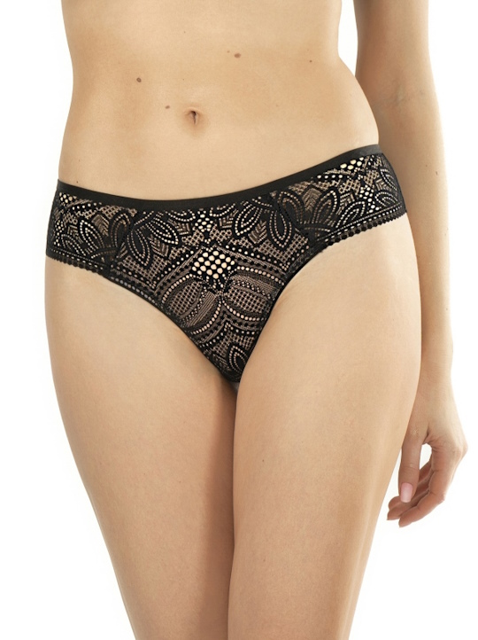 Состав: полиамид 60%, полиэстер 16%, хлопок 10%, эластан 7%, другие 7% Трусики стринг Desire выполнены из кружевного полотна, спереди продублированы телесной сеткой, на спинке V-образный вырез. Ластовица из 100% хлопка телесного цвета. Идеально сочетаются с бюстгальтерами Desire. Комментарии к товару