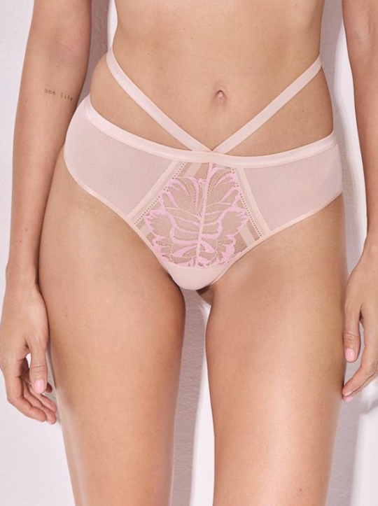 Состав: полиамид 70%, эластан 10%, хлопок 10%, вискоза 5%, полиэстер 5% Трусики стринг из коллекции Glossy Iris выполнены из эластичного нежного кружева с розовыми цветами с эффектом мерцания и двух слоев телесной сетки. Талию охватывают тонкие эластичные резинки. Ластовица из 100% хлопка. Идеально сочетаются с бюстгальтерами Glossy Iris.