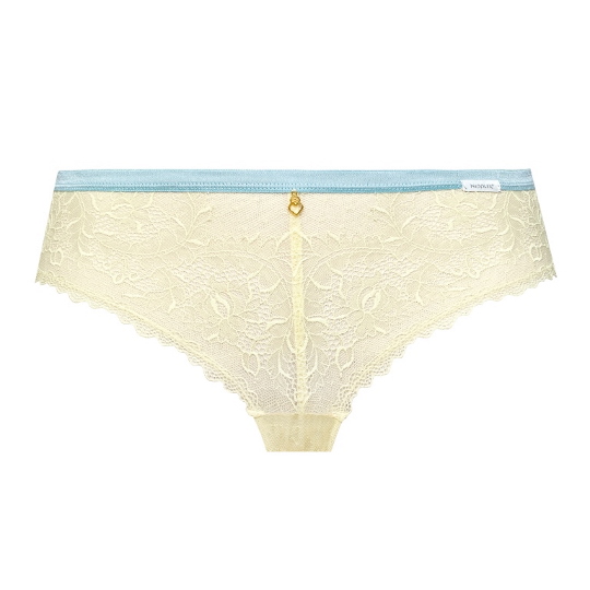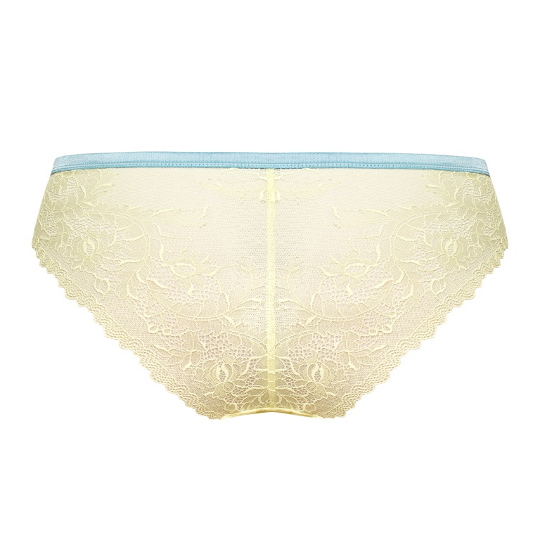Состав: полиамид 60%, полиэстер 16%, хлопок 10%, эластан 7%, другие 7% Трусики слип из коллекции Ilona из кружевного полотна желтого цвета, спереди продублированы сеткой в тон, резинка контрастного голубого цвета. Ластовица проложена 100% хлопком. Комментарии к товару