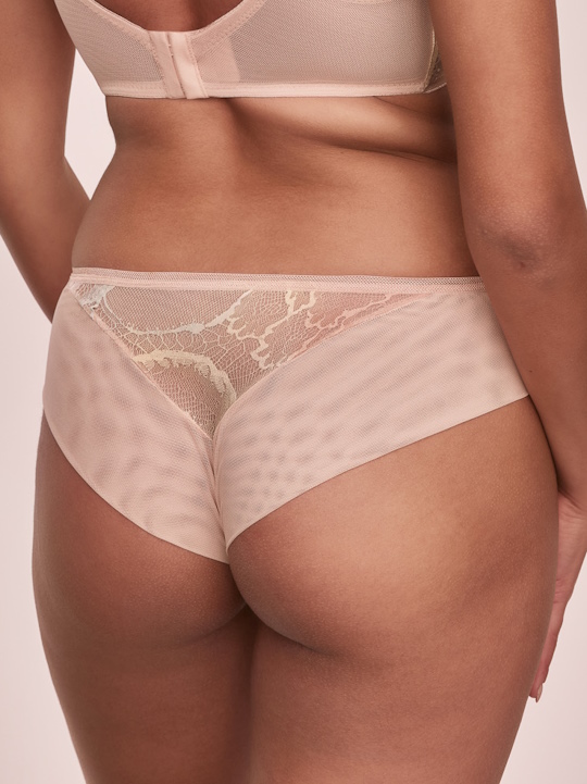 Состав: полиамид 68%, полиэстер 20%, хлопок 7%, эластан 5% Трусики бразильяна из коллекции Loretto выполнены из эластичного двухцветного кружевного полотна и телесной сетки, кружево продублировано телесной сеткой, проймы ного на спинке из сетки, сложенной вдвое. Ластовица из 100% хлопка телесного цвета. Идеально сочетаются с бюстгальтерами Loretto.