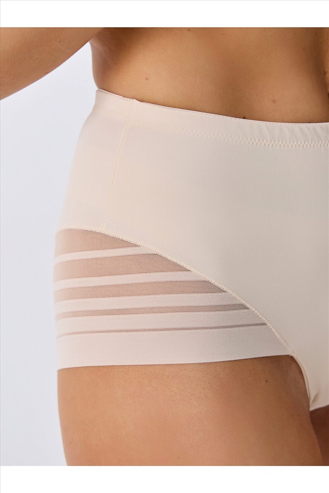 Страна производства: Китай Трусы макси от бренда MADAMODA, выполнены из микроволокная и дополнены элегантными вставками из нежной сетки по бокам и задней части изделия -  не будут выделяться через одежду.  Закрытая форма ягодиц. Модель максимально подтягивает живот за счет дополнительной вставки из сетки и корректирует ягодицы.