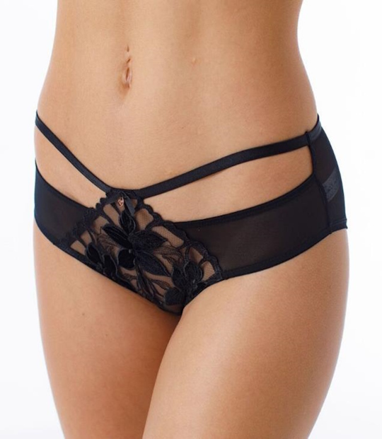 Состав: 85% ПОЛИАМИД/ 10% ЭЛАСТАН/ 5% ХЛОПОК Трусы-панти со средней линией талии, выполнены из эластичной сетки с вышивкой и декоративными цветами из флока. Украшение: медальон с логотипом COQUETTE REVUE.