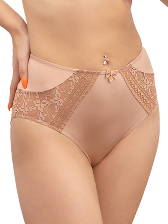 Состав: 83% полиамид 12% эластан 5% хлопок Трусы макси с высокой линией талии. Передняя и задняя детали декорированы вставками из эластичного кружева. Срезы задних деталей – это фигурный край кружева. Ластовица из хлопкового полотна.Декор:атласный бант и подвеска кружевное сердечко Коллекция "Chiaro".