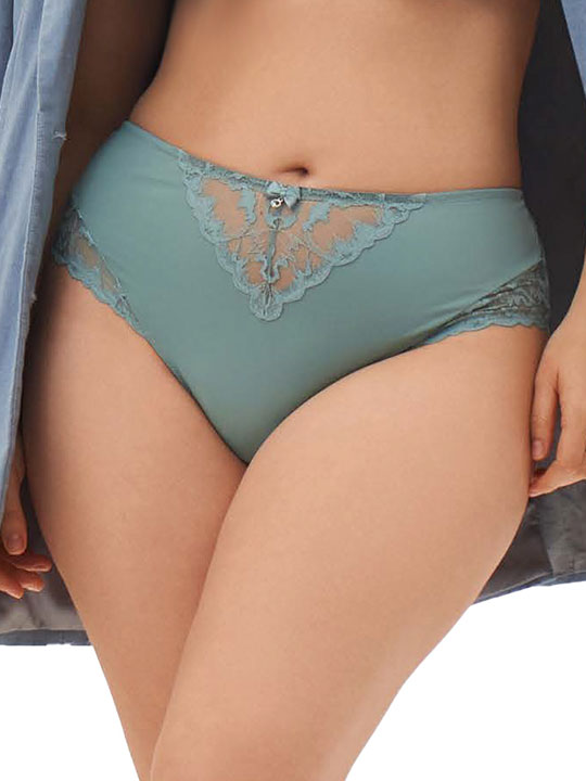 Состав: 81% полиамид, 14% эластан, 5% хлопок Трусы макси кружевные со средней посадкой из эластичного полотна, спереди вставка в виде треугольника из эластичного кружевного полотна. Задняя деталь выполнена из эластичного кружевного полотна с треугольной вставкой из эластичного полотна. Ластовица из хлопкового трикотажного полотна. Комментарии к товару