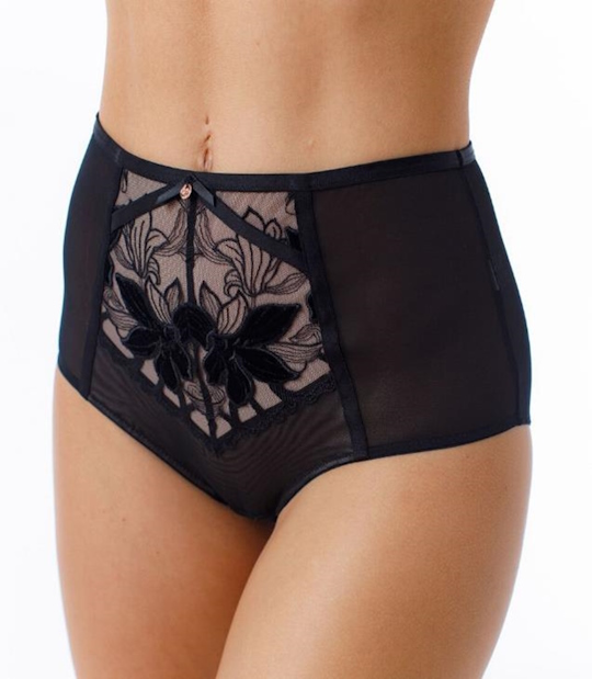 Состав: 85% ПОЛИАМИД/ 10% ЭЛАСТАН/ 5% ХЛОПОК Трусы-макси с высокой линией талии. Выполнены из эластичной сетки с вышивкой и декоративными цветами из флока. Передняя деталь внутри продублирована эластичной сеткой. Украшение: медальон с логотипом COQUETTE REVUE.