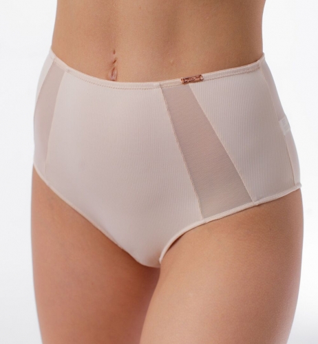 Состав: 85% ПОЛИАМИД/ 10% ЭЛАСТАН/ 5% ХЛОПОК Трусы-макси с высокой линией талии, выполнены из матовой шелковистой микрофибры в рубчик. Задняя часть выполнена из эластичной сетки. Плоские швы. Украшение: медальон COQUETTE REVUE.