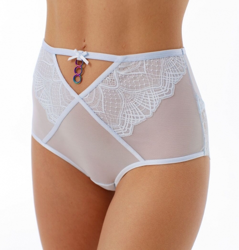 Состав: 85% ПОЛИАМИД/ 10% ЭЛАСТАН/ 5% ХЛОПОК Трусы макси с высокой линией талии. Выполнены из эластичной сетки и эластичного кружева. Украшение: медальон в виде трёх колец.