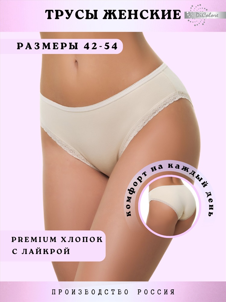 Сезонность: лето | осень | весна | зима Однотонные трусы женские от Di Colore базовых расцветок модели слипы с низкой / средней посадкой комфортны и удобны в повседневной носке. Производство Россия. Трусики хлопок универсальны и подходят для каждой женщины и девушки. Высокое качество ткани турецкого производства гарантирует износостойкость. Резинки и кружево эластичные и мягкие, не натирают кожу и не давят на область живота. Трусы не бесшовные, не эротические, не утягивающие. Слипы женские подходят для беременных, для высоких и невысоких, для занятий спортом: фитнес, йога, танцы, бег.