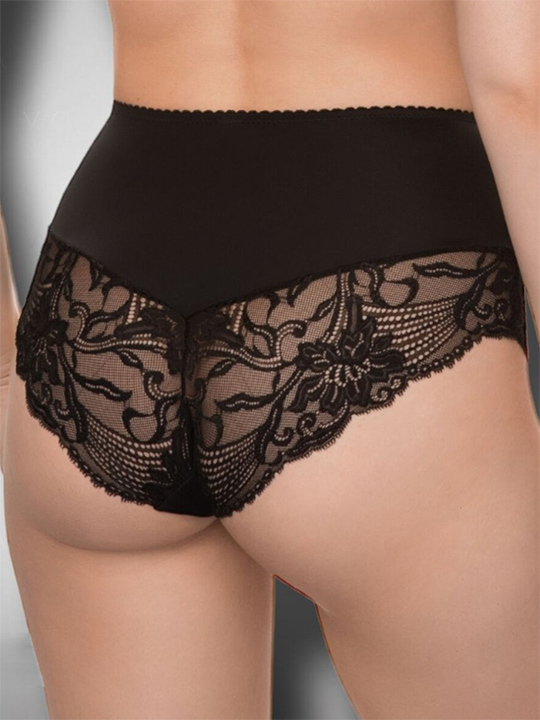 Коллекция: VOVA_Лаура Состав: 70% полиамид, 20% эластан, 10% хлопок Производитель: V.O.V.A. Маркир Миам Дамские трусы с высокой линией талии. По ножкам и талии обработаны простым зиг-загом. Украшены кружевом по ножкам спереди и сзади. Выполнены из объемного эластичного кружева с блеском и микрофибры. Комментарии к товару