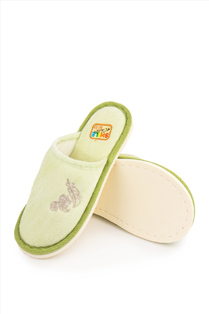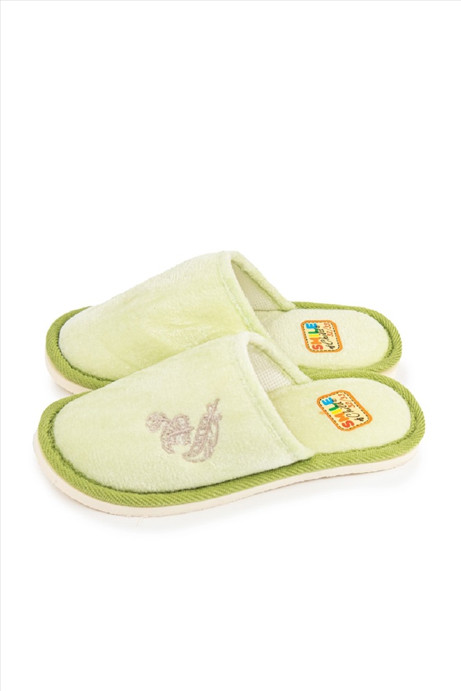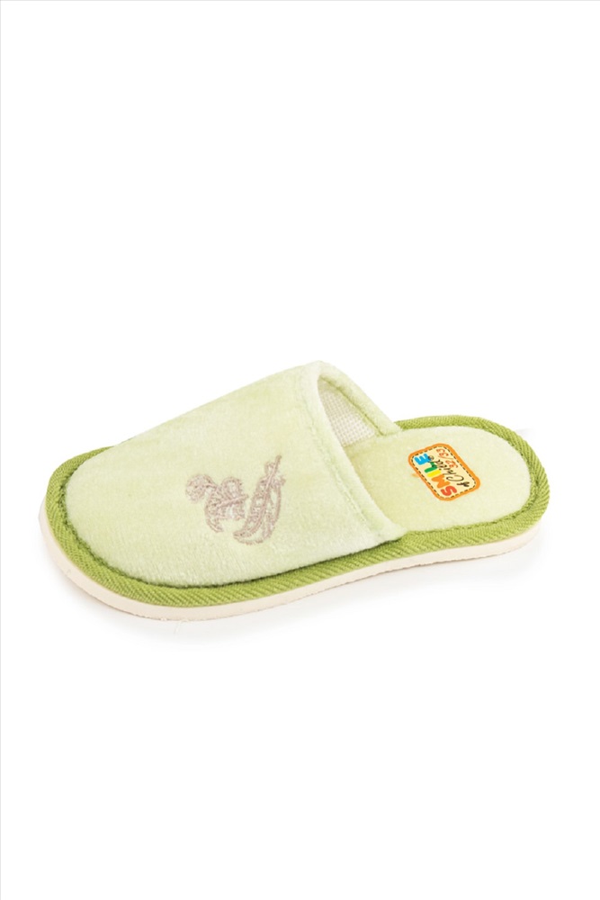 Стиль: домашний Домашние детские тапочки марки Smile of milady закрытого типа. Верх и стельки выполнены из мягкого приятного на ощупь текстиля. Легкая подошва, выполненная из экологического материала ЭВА, принимает форму стопы и амортизирует при ходьбе, вследствие чего ноги меньше устают, ходить удобнее и более комфортно. Подошва имеет противоскользящее покрытие. Данная модель представлена в трех нежных цветовых тонах: светло-зеленый, фиолетовый и оранжевый.