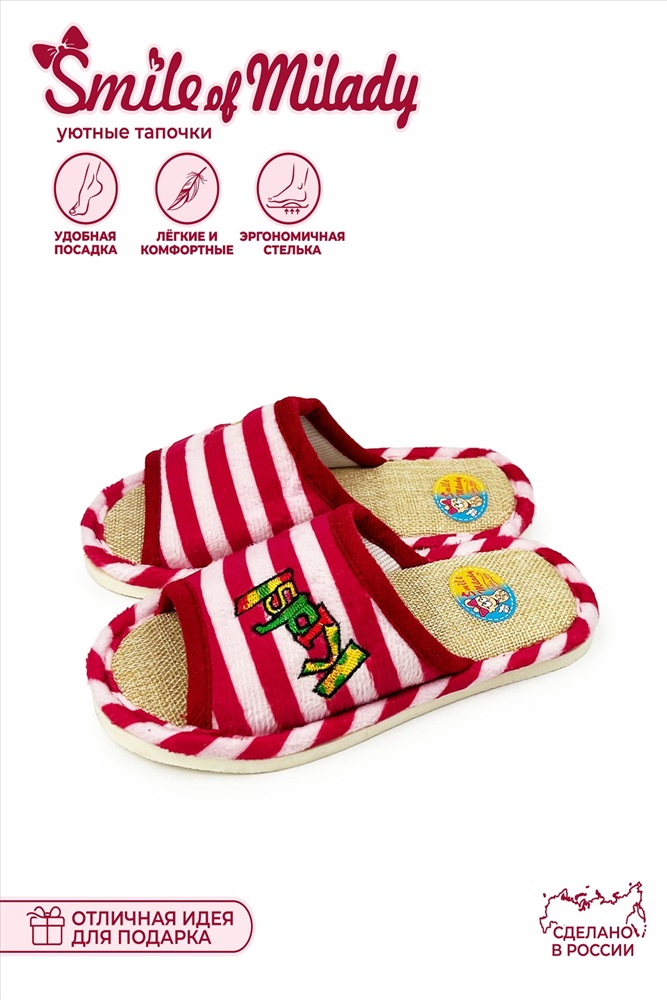 Состав: текстиль 100% Модель: Туфли комнат. детские А-70F-019-1-07 отк Тип товара: тапки Бренд: РПТ АО Назначение: для дома Особенности: открытая пятка | открытый носок Рисунок: полоска Сезонность: лето | осень | весна | зима Стиль: домашний Детские тапочки бренда Smile of milady классической модели закрытого типа. Верх и стелька выполнены из приятного текстиля. Легкая подошва, выполненная из экологического материала ЭВА, амортизируется при ходьбе, вследствие чего ноги меньше устают. Подходят для любого времени года. Таблица размеров и веса