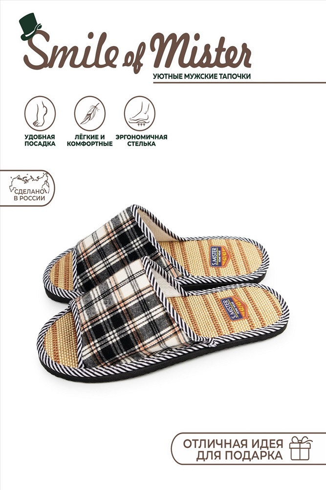 Стиль: домашний Открытые домашние мужские тапочки от бренда Smile of Mister - лучший выбор для Ваших ног. В таких тапках ноги не будут преть, но вместе с тем модель теплая и подойдет для зимы.Шлепки легкие и комфортные, имеют эргономичную посадку. Открытый мысок обеспечивает дополнительный комфорт и тепло для ног.Комфортная стелька выполнена из текстиля, благодаря чему стопа не будет потеть. Гибкая нескользящая подошва сланцев выполнена из экологического материала ЭВА, обеспечит амортизирующий (ортопедический) эффект, благодаря чему снижается усталость ног.Ухаживать за шлепанцами легко. Используйте специальную щетку и средство для удаления пятен. Для обработки стельки и внутренних поверхностей можно пользоваться влажными салфетками.