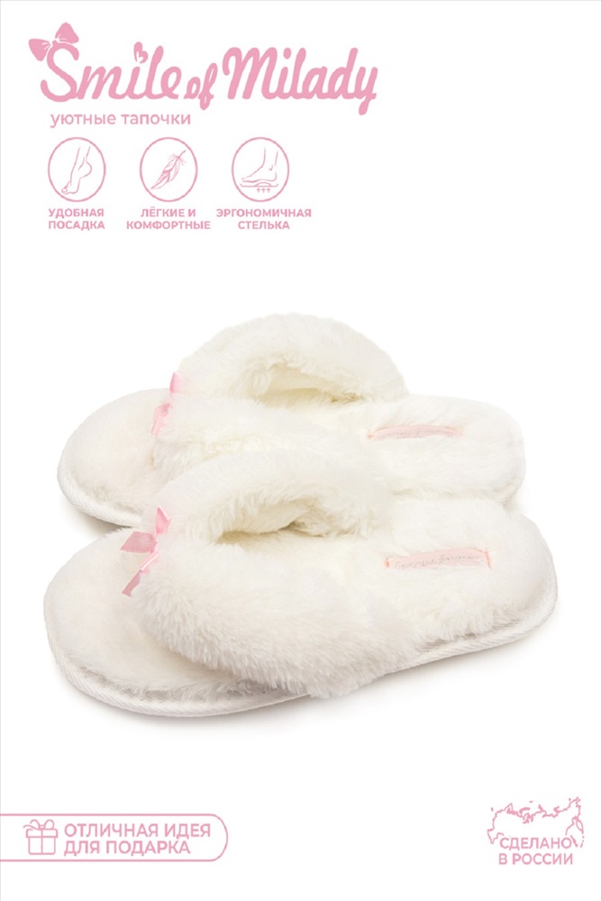 Стиль: домашний Комнатные женские тапочки вьетнамки от бренда Smile of Milady - стильная и комфортная домашняя обувь. В этих меховых тапках нога отдыхает после насыщенных рабочих будней и активных выходных. Модель теплая, пригодится в межсезонье и зиму. Мягкие домашние сланцы можно взять с собой в путешествие, в командировку, на дачу. Запасите несколько пар для гостей. Шлепанцы для женщин подойдут на широкую ногу, полную стопу. Шлепки имеют гибкую подошву из экологичного материала эва (eva). Она не скользит, достаточно мягкая и прочная, обеспечит амортизирующий эффект, снижающий усталость ног.