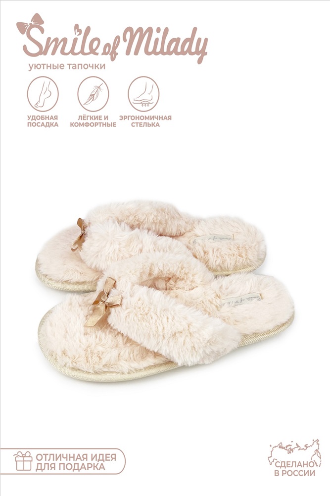 Стиль: домашний Комнатные женские тапочки вьетнамки от бренда Smile of Milady - стильная и комфортная домашняя обувь. В этих меховых тапках нога отдыхает после насыщенных рабочих будней и активных выходных. Модель теплая, пригодится в межсезонье и зиму. Мягкие домашние сланцы можно взять с собой в путешествие, в командировку, на дачу. Запасите несколько пар для гостей. Шлепанцы для женщин подойдут на широкую ногу, полную стопу. Шлепки имеют гибкую подошву из экологичного материала эва (eva). Она не скользит, достаточно мягкая и прочная, обеспечит амортизирующий эффект, снижающий усталость ног.