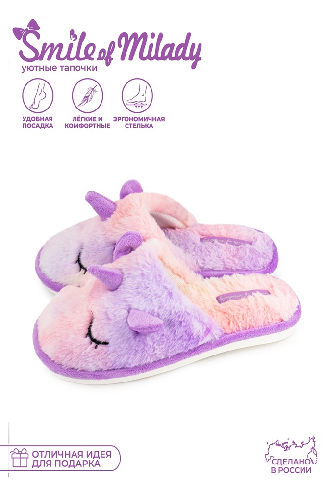 Состав: искусственный мех 80%, EVA 20% Модель: Туфли комнат. жен. 352-370-06 зак Тип товара: тапки Материал: эко-мех Бренд: РПТ АО Назначение: для дома НДС: 22% Особенности: открытая пятка | закрытый носок Рисунок: зверюшки Сезонность: лето | осень | весна | зима Стиль: домашний Комнатные женские тапочки от бренда Smile of Milady - стильная и комфортная домашняя обувь. В этих закрытых тапках нога отдыхает после насыщенных рабочих будней и активных выходных. Модель теплая, пригодится в межсезонье и зиму.Мягкие домашние сланцы можно взять с собой в путешествие, в командировку, на дачу.Запасите несколько пар для гостей.Шлепанцы для женщин подойдут на широкую ногу, полную стопу. Шлепки имеют гибкую подошву из экологичного материала эва (eva). Она не скользит, достаточно мягкая и прочная, обеспечит амортизирующий эффект, снижающий усталость ног.Это красивая дизайнерская домашняя обувь, в которой приятно проводить время и заниматься делами. Таблица размеров и веса