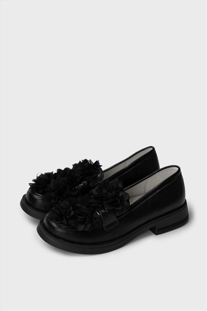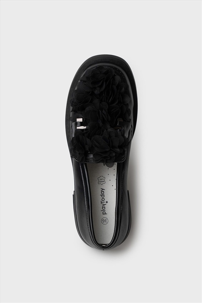 ID товара: 1130170 Состав: 100% Искусственная кожа; 100% Полиэстер Сезон: Демисезон Школьные туфли для девочки подростка с оригинальным оформлением многослойными цветами из сетки. Верх обуви выполнен из искусственной кожи. Лоферы декорированы металлической фурнитурой. Подкладка и стелька - 100% натуральная кожа. Кожаная стелька с анатомическим элементом обеспечивает правильную нагрузку на стопу. Высота каблука 3 см - очень комфортная для повседневной носки. Формоустойчивый задник поддерживает стопу в правильном положении. Подошва из ТПР гибкая и обладает хорошими износостойкими свойствами. Туфли для девочки школьницы отлично подойдут как сменка в школу, для праздника, а также для прогулок: весна, лето, ранняя осень. Комментарии к товару