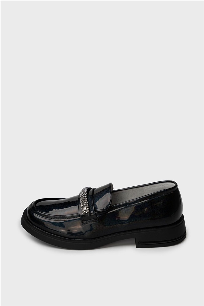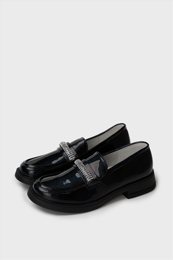Сезон: Весна/Лето Школьные туфли для девочки подростка. Верх обуви выполнен из искусственной лаковой кожи с "бензиновым" переливающимся эффектом. Лоферы декорированы цепочкой со стразами Подкладка и стелька - 100% натуральная кожа. Кожаная стелька с анатомическим элементом обеспечивает правильную нагрузку на стопу. Высота каблука 3 см - очень комфортная для повседневной носки. Формоустойчивый задник поддерживает стопу в правильном положении. Подошва из ТПР гибкая и обладает хорошими износостойкими свойствами. Туфли для девочки школьницы отлично подойдут как сменка в школу, для праздника, а также для прогулок: весна, лето, ранняя осень.