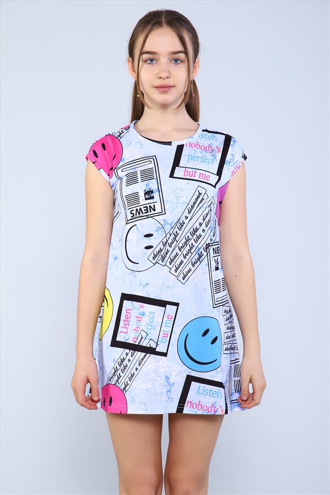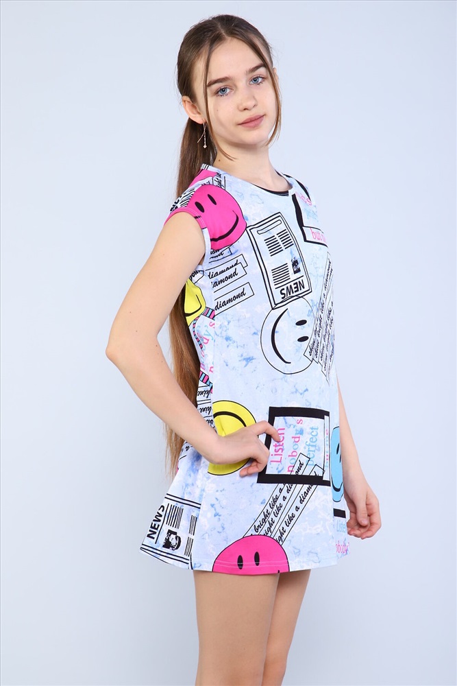 Очаровательная туника для девочек, выполненная из хлопкового полотна. Изделие с круглой горловиной и спущенная линия плеча, украшено ярким дизайнерским принтом. Отличный вариант для повседневной носки, как дома, так и на выход.