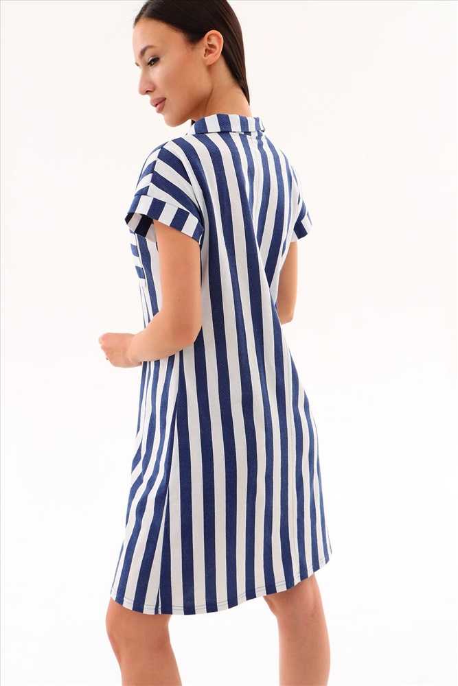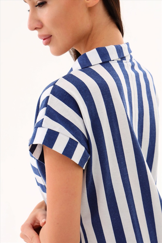 ID товара: 948846 Состав: 100% Хлопок Сезон: Весна/Лето Длина: Короткая Фасон: Полуприлегающий Рукав: короткие Вырез горловины: Отложной воротничок Рисунок: Полоски Основная ткань: Хлопок Стиль: повседневный Вид ткани: Кулирка Страна бренда: Россия Страна производства: Россия Moses. Туника женская трикотажная хлопок длиной до колена, со спущенной проймой на манжете и застежкой поло. Благодаря оптимальной длине и свободному крою в этой тунике будет комфортно и удобно в течение дня. На груди имеются два накладных кармана. Расцветка туники бело синея полоса, полосатый рисунок актуален и прекрасно подходит всем. Платье могут носить девушки любого роста, возраста и с любым типом фигуры - худые и полные, взрослые и подростки. Порадуйте себя осенью новым домашним платьем! Комментарии к товару