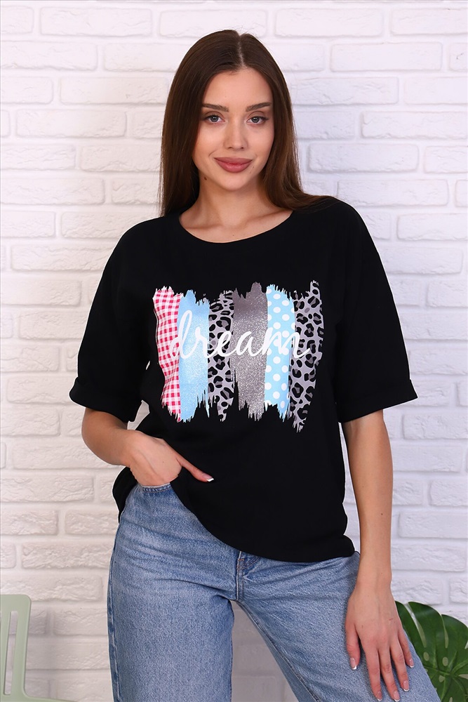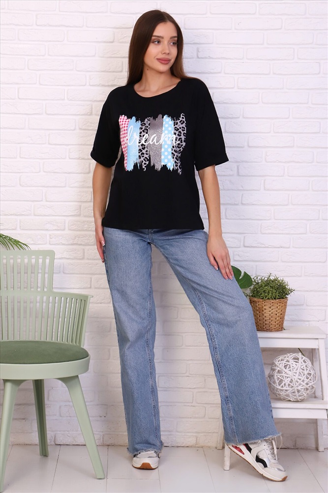 Туника удлиненная женская в стиле oversize имеет неповторимый свободный крой. Этот стиль подходит для любой женщины, ведь он может скрыть недостатки фигуры и подчеркнуть ее достоинства. Натуральный состав из 100% хлопка обеспечит вам комфорт и хорошее настроение. Удобный рукав до локтя. Принт с блестками не оставит никого равнодушным. Невозможно описать удобство и прелесть вещей в этом стиле, чтобы это понять, их просто нужно носить. Данную модель туники можно надеть как с классической юбкой и брюками, так и с джинсами и леггинсами.