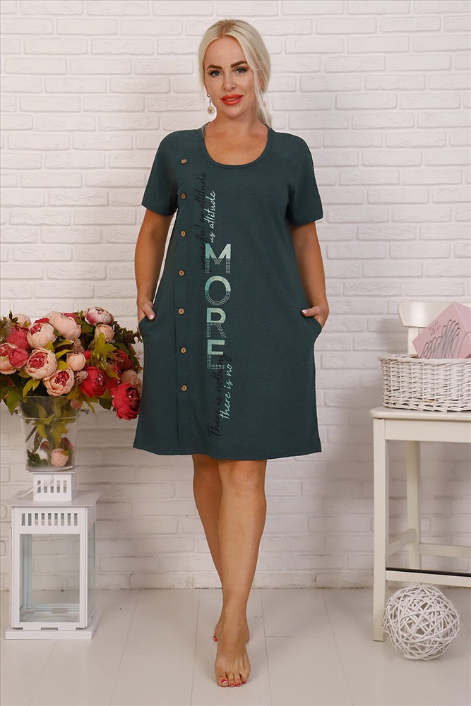 Производитель: НАТАЛИ ID товара: 714597 Состав: 50% Хлопок, 50% Полиэстер Сезон: Весна/Лето Длина: До колена Фасон: Прямой Рукав: Короткие Вид застежки: Без застежки Вырез горловины: Круглый Рисунок: Надпись Тип карманов: В шве Декоративные элементы: Пуговицы Основная ткань: Хлопок | Кулирка Стиль: Повседневный Страна бренда: Россия Страна производства: Россия