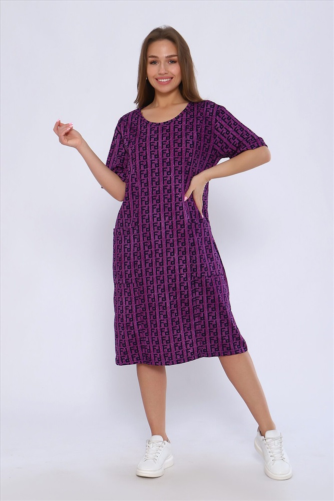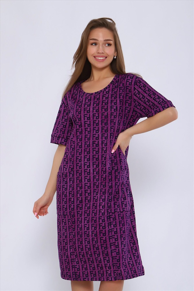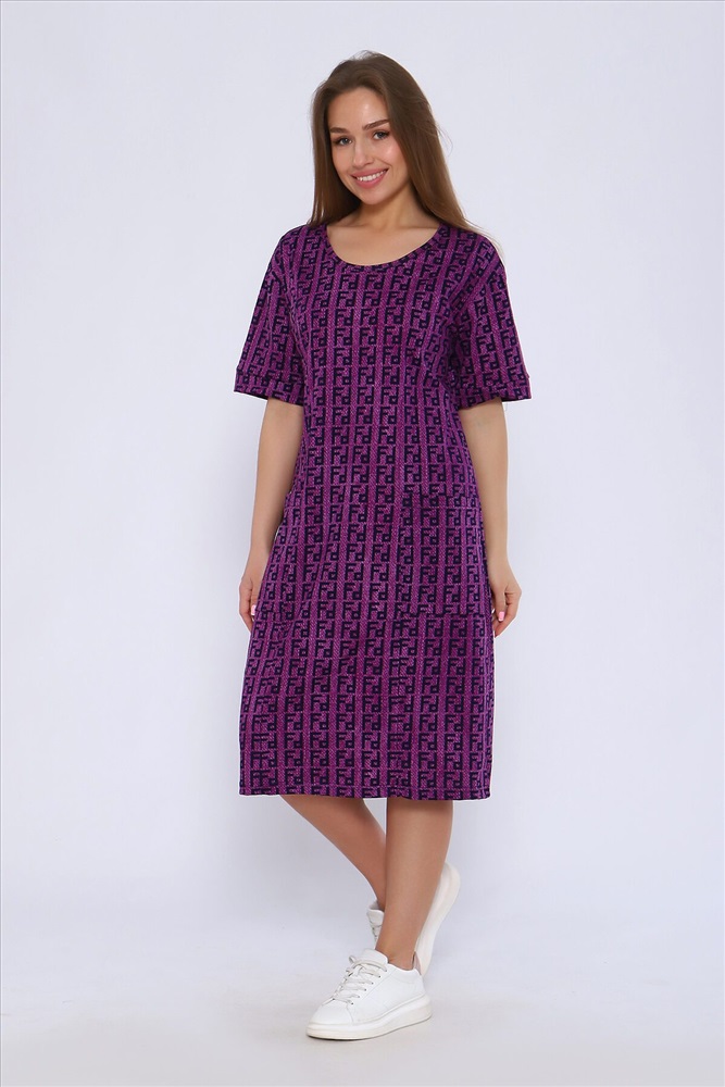ID товара: 1017120 Состав: 100% Хлопок Сезон: Весна/Лето Длина: Миди Фасон: Полуприлегающий Рукав: короткие Вырез горловины: Округлый Рисунок: Узор Тип карманов: Накладные Основная ткань: Хлопок Стиль: повседневный Вид ткани: Кулирка Страна бренда: Россия Страна производства: Россия Туника полуприлегающего силуэта с короткими рукавами на манжетах. Полочка с рельефами и двумя накладными карманами. Комментарии к товару