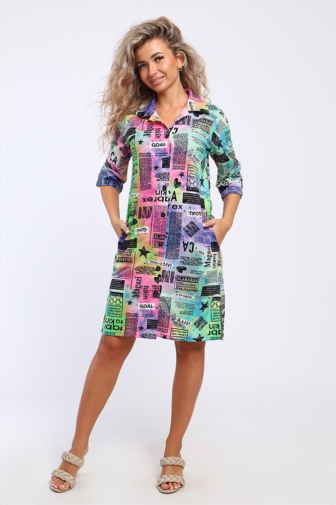 Застежка: пуговицы Туника полуприлегающего силуэта на пуговицах и рубашечным воротником. В боковых швах разрезы и удобные карманы. Рукава длиной 3/4.