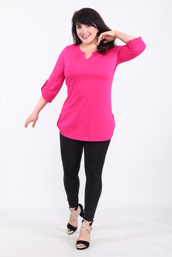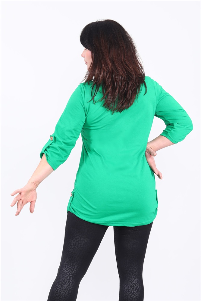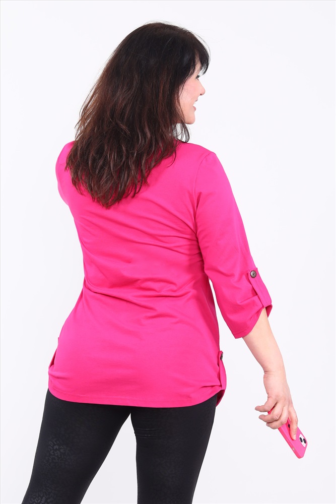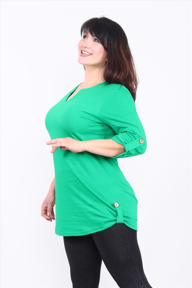 Застежка: без застежки Туника женская с рукавом 3/4. Данная модель выполнена из трикотажного полотна кулирка (хлопок 100%). Горловина обработана обтачкой. Низ изделия округлый. По бокам изделия и внизу на рукавах присутствуют хлястики с пуговками. Отличная модель для отдыха и прогулок.