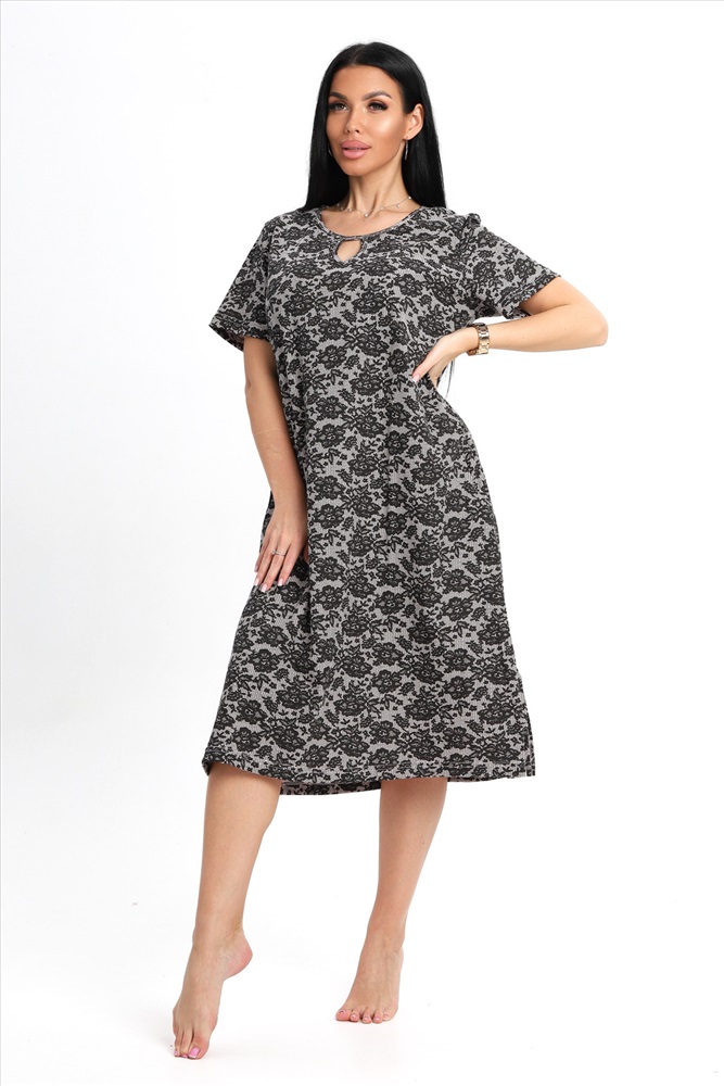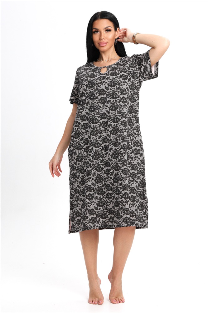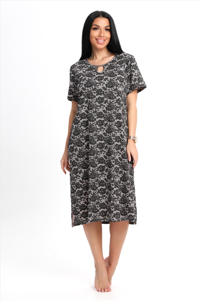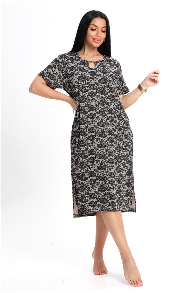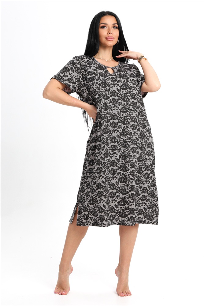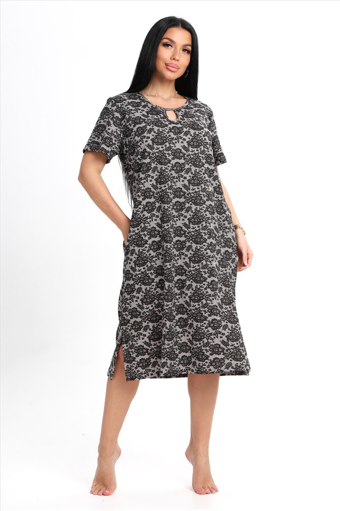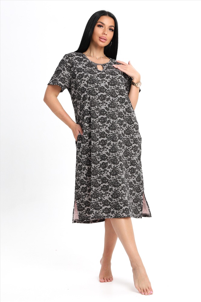 Застежка: без застежки Туника женская прямого силуэта с карманами, горловина обработана кантом с фигурной капелькой на груди. Сбоку разрезы.