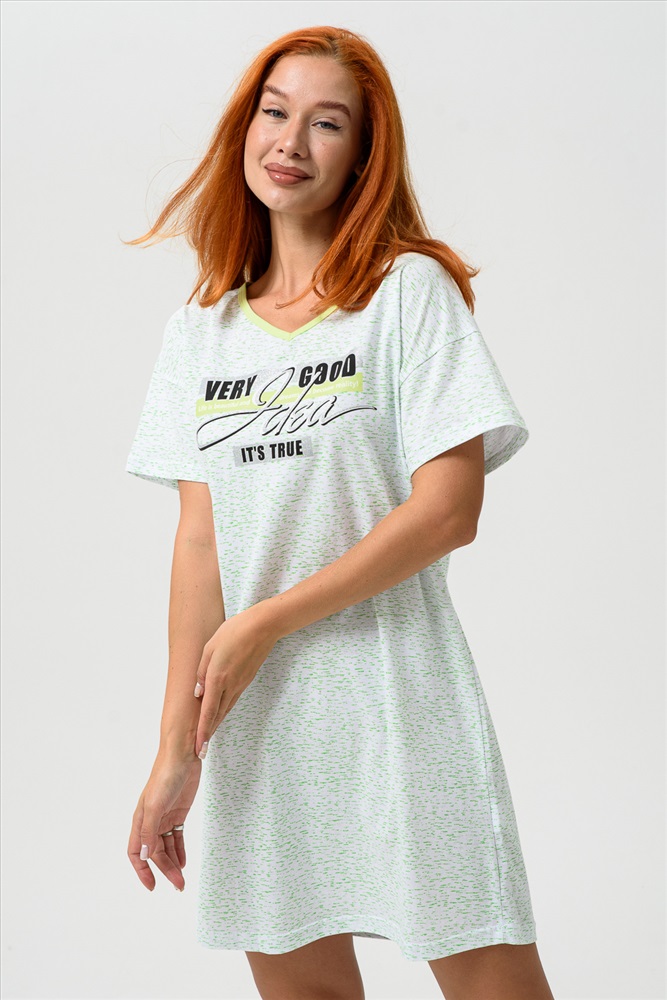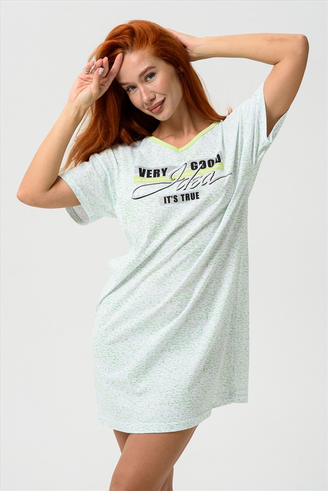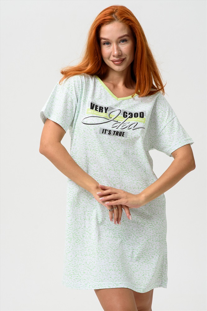 Застежка: без застежки Молодёжная туника в виде удлинённой свободной футболки с современным принтом. Можно использовать в качестве ночной сорочки.