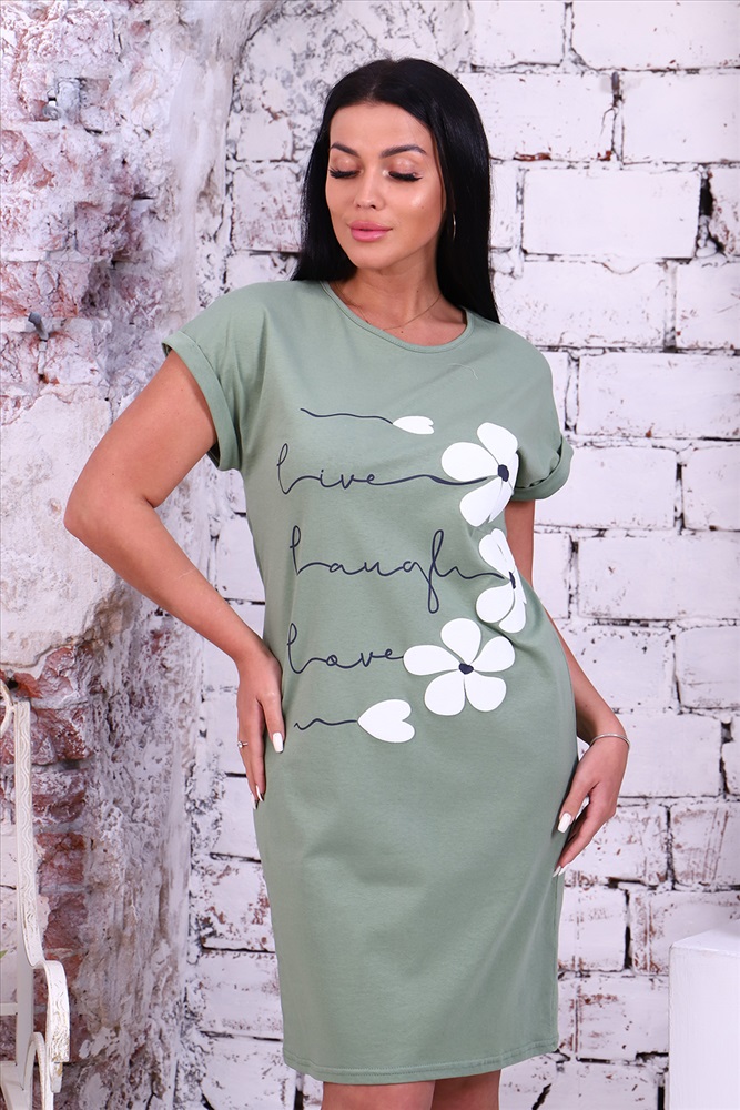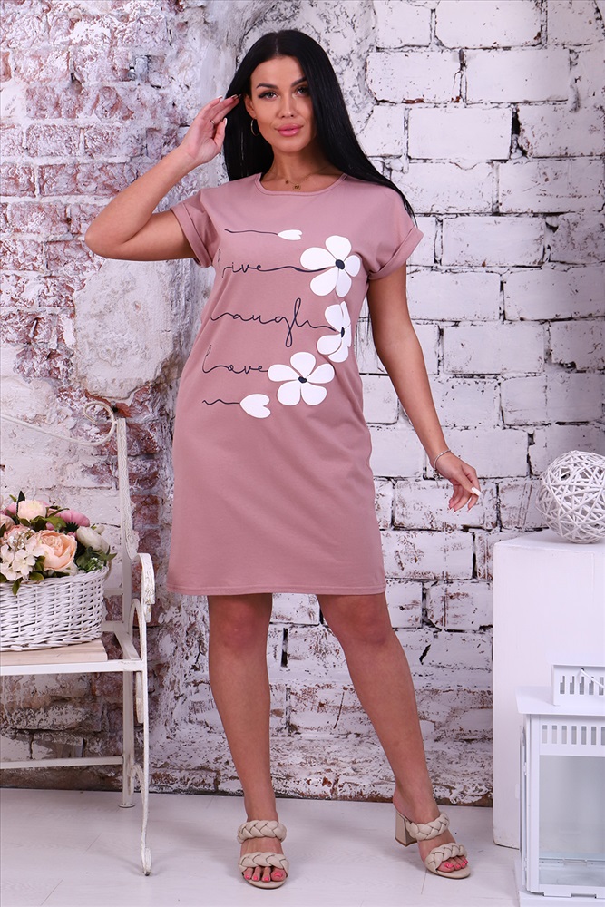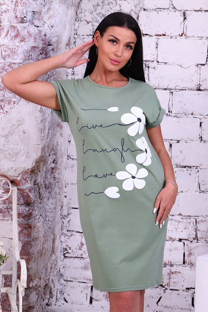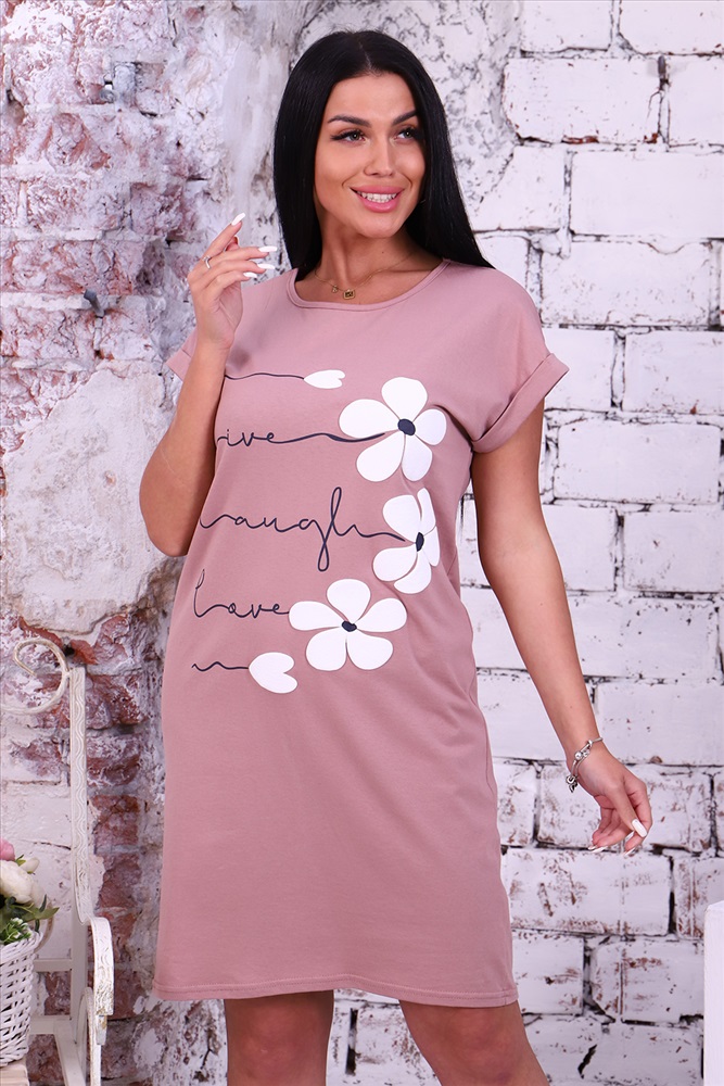 Застежка: без застежки Туника женская с нежным 3Д принтом из однотонной кулирки, модель слегка приталенного силуэта, округлая горловина обработана бейкой, спущенная пройма на манжете с отворотом. Повседневная, уютная, приятная к телу туника незаменимая вещь для дома и прогулок.