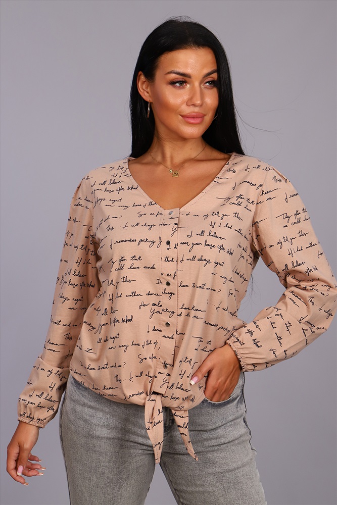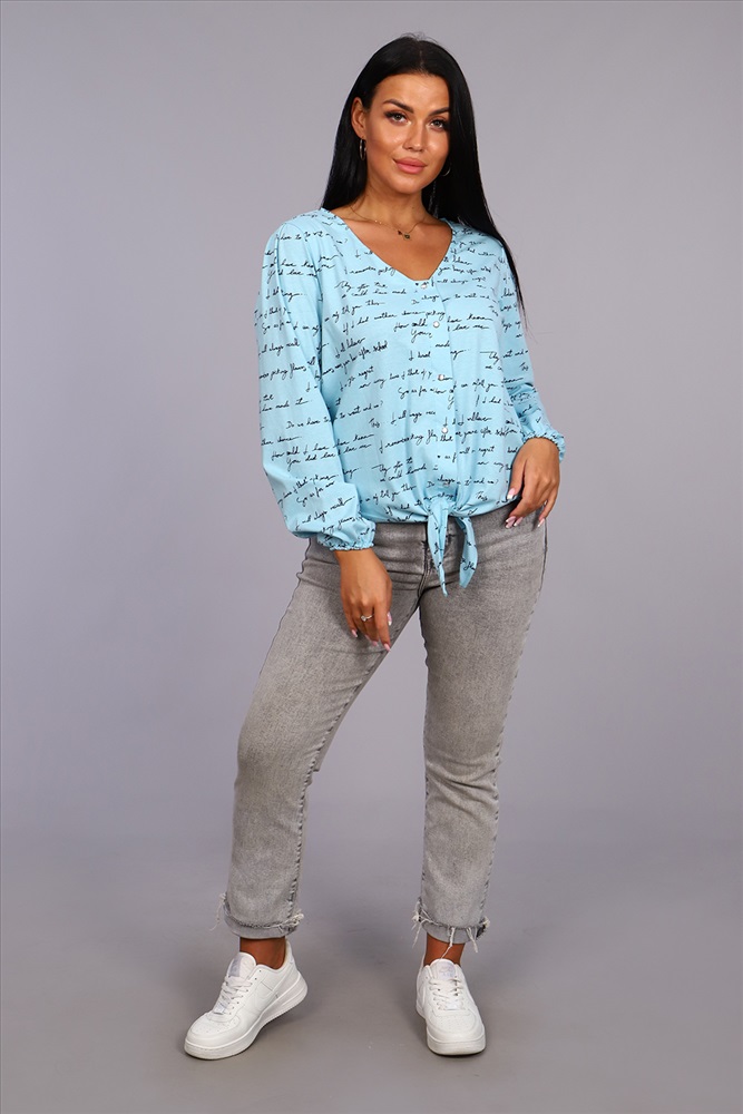Застежка: кнопка Женская стильная туника выполнена из 100% хлопчатобумажного полотна двойного крашения в трёх нежных расцветках. Ткань в результате такого окрашивания получает более высокие прочностные характеристики, не меняя текстильных качеств. Красивый V - образный вырез, обработанный силиконовой лентой, не даёт горловине вытянуться и деформироваться даже после стирки. Так же тунику дополняет длинный рукав с оригинальной бантовой складкой по окату и сборкой на резинку по низу. Планка, выполненная на расстёгивающихся кнопках, плавно переходит в неровный низ, завязывающийся в узел. В тунике такого плана Вы будете выглядеть в любое время и в любом месте на все 100!