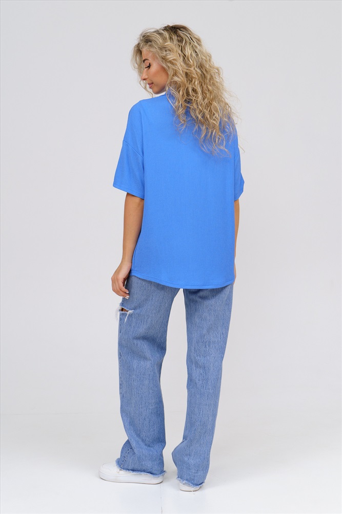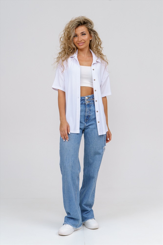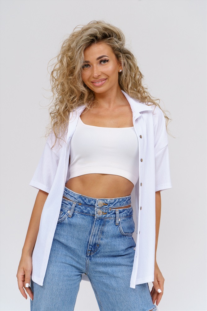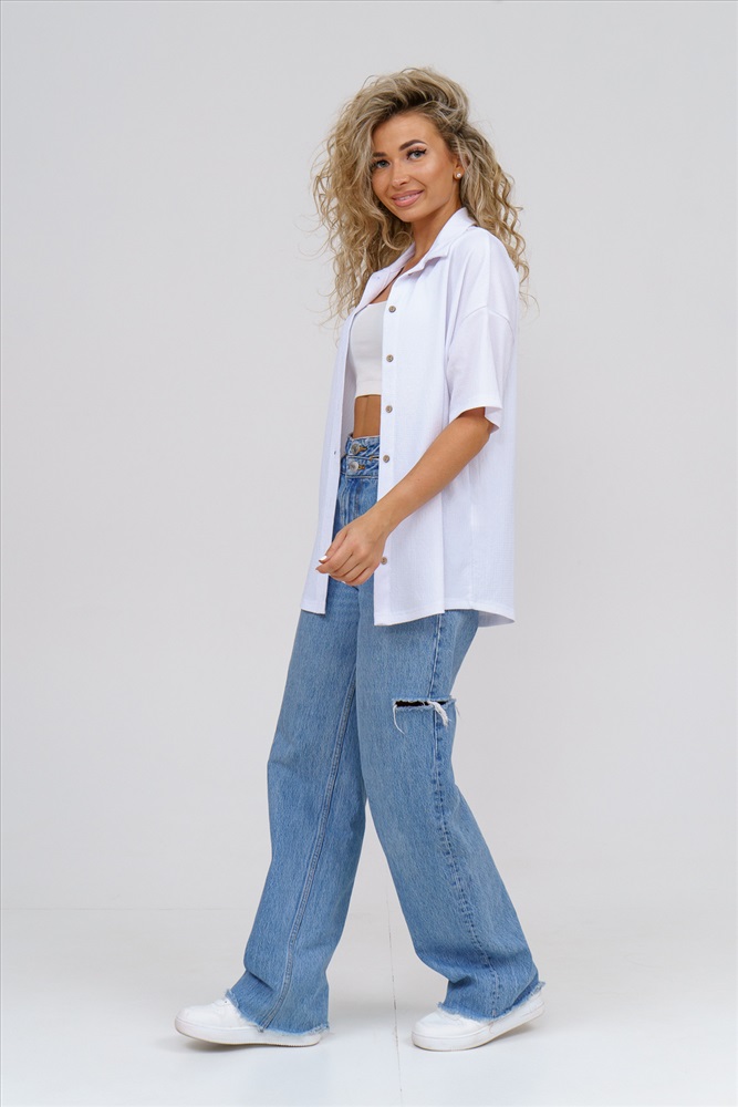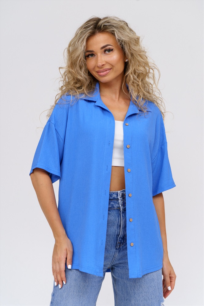 Застежка: пуговицы Модная рубашка в стиле oversize выполнена из лёгкого и приятного к телу материала - жатка. Это одна из самых модных и популярных моделей сезона. Рубашка имеет слегка удлинённую спинку, спущенную линию плечевого шва, короткий рукав, классический рубашечный воротник и планку. А модные цвета этого лета добавляют законченность деталям и определяют must have сезона. За счёт свободного фасона рубашку можно носить с любым типом фигуры, отлично подойдёт для беременных женщин, а также кормящих мам. Женская рубашка идеальна как для лета, так и для прохладного вечера. С помощью такой рубашки Вы можете создать деловой образ или летний расслабленный. А также отправиться на праздник или вечеринку, в школу или на прогулку, на пляж или провести незабываемый вечер дома. Модель такого плана идеально подойдёт и в качестве подарка для себя и своих любимых! У нас Вы также можете приобрести шорты - модель 36742 и брюки - модель 36743 в едином стиле с рубашкой и создать свой неповторимый образ! Ориентируясь по таблице замеров, обратите внимание, что замеры длины рукава проводились от точки основания шеи.