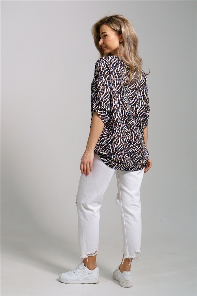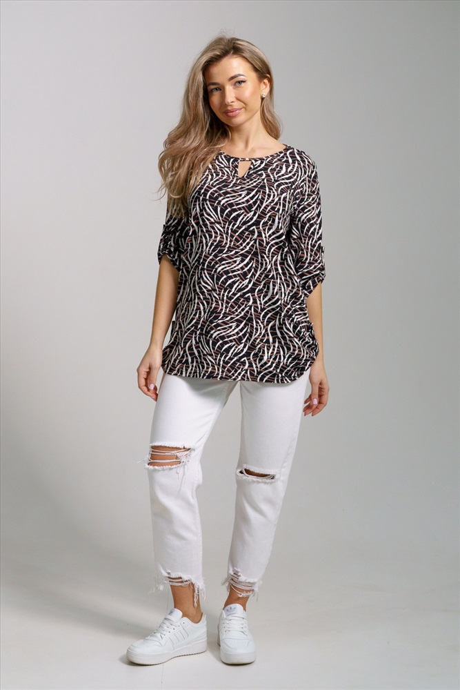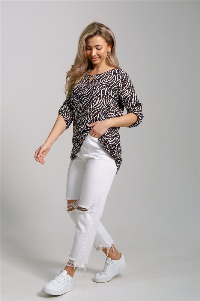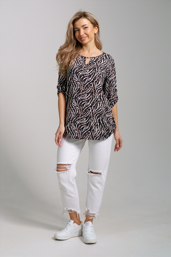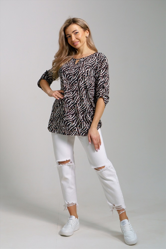 Застежка: без застежки Женская туника свободного силуэта в стиле oversize выполнена из струящегося нежного вискозного полотна с модным рисунком. Этот стиль подходит для любой женщины, ведь он может скрыть все недостатки фигуры и подчеркнуть её достоинства. На материале выполнена печать диджитал с чёткой, яркой и чистой цветопередачей. То есть, рисунок печатается специальным оборудованием сразу на полотне без промежуточных носителей. Такие принты не боятся частых стирок, утюжек и не выгорают на солнце. Округлая горловина с треугольным вырезом, паты на рукавах и по низу изделия делают тунику удобной и привлекательной. Большие размеры подчеркнут ваши достоинства и скроют все недостатки фигуры, благодаря своему идеальному крою. Туника женская с рукавом 3/4 не сковывает движения. Одежда из материала такого плана прослужит вам долгое время, не теряя свой цвет и форму. Тунику летнюю можно взять с собой в роддом, в поездку, на отдых в санаторий или будет идеальным вариантом для похода на работу, корпоратив, фотосессию. А также будет отличным подарком для мамы, бабушки, сестры, подруги и себя любимой. А подарить такой сюрприз можно на любой праздник, день рождения или юбилей, новый год или 8 марта. Туника удлиненная женская будет хорошо смотреться как на невысоких, так и на высоких. Современная туника - это почти неотъемлемая часть гардероба любой женщины, которая сделает Вас неотразимой в любой ситуации.