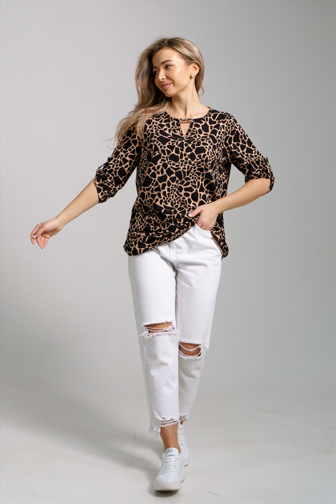 Состав: 100% хлопок Модель: Туника 36944 Тип товара: туника Материал: кулирка | кулирка Бренд: Натали Суслова Карман: без карманов Отделка: с патами Рейтинг: Рейтинг 4 и выше Рисунок: анималистичный Рукав: рукав 3/4 Сезонность: лето | осень | весна | зима Силуэт: свободный Стиль: повседневный Воротник: без воротника Застежка: без застежки Женская туника свободного силуэта в стиле oversize выполнена из 100% хлопчатобумажного полотна. Этот стиль подходит для любой женщины, ведь он может скрыть все недостатки фигуры и подчеркнуть её достоинства. Округлая горловина с треугольным вырезом, паты на рукавах и по низу изделия делают тунику удобной и привлекательной. Современная туника - это почти неотъемлемая часть гардероба любой женщины. При бережном уходе прослужит вам долгое время. Туника будет любимой домашней одеждой. Тунику летнюю можно взять с собой в роддом, в поездку, или на отдых в санаторий. Блузка такого плана будет отличным подарком для мамы, бабушки, сестры, подруги и любимой девушки. А подарить такой сюрприз можно на любой праздник, день рождения или юбилей, 8 марта, новый год или рождество. Туника удлиненная женская будет хорошо смотреться как на невысоких, так и на высоких. Блузка с вырезом идеальная вещь для похода на работу и дачу, которая сделает Вас неотразимой в любой ситуации. Таблица размеров и веса