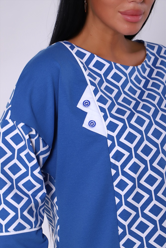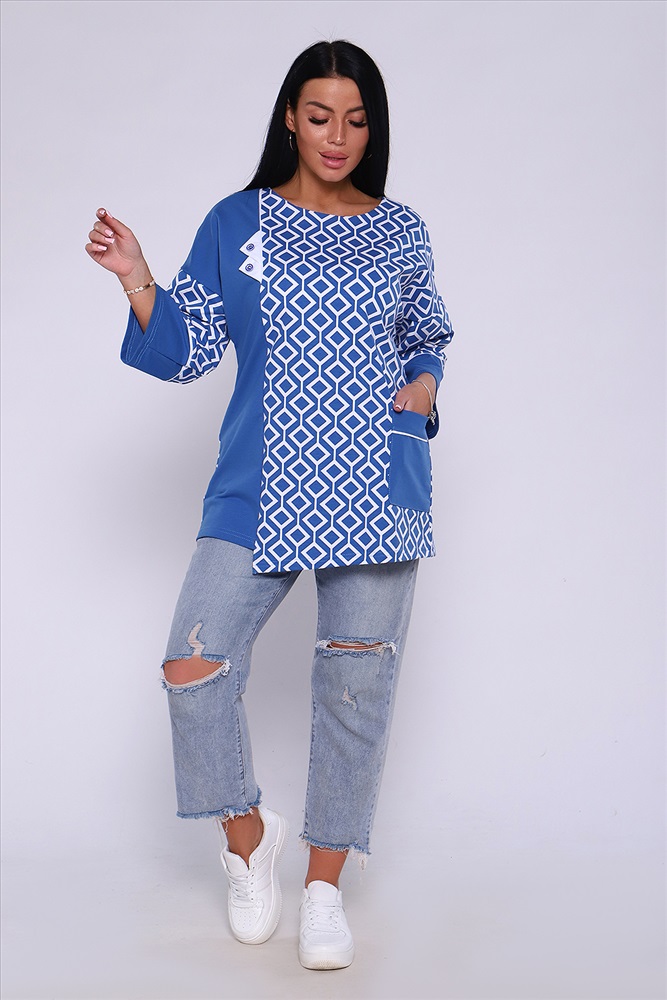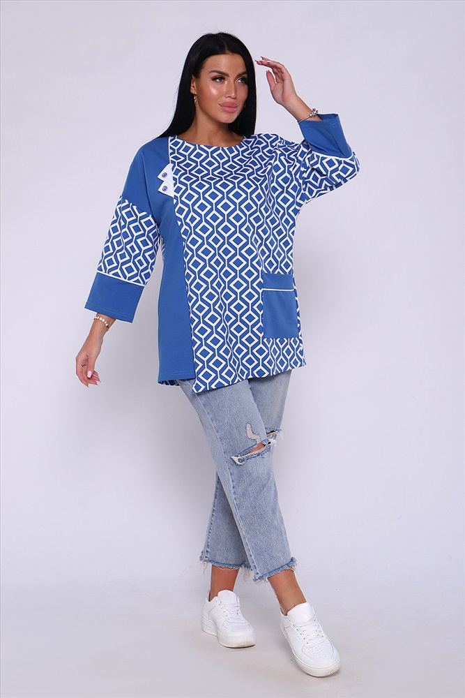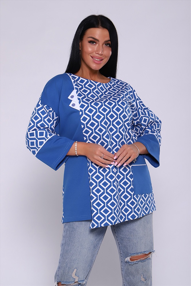 Состав: 72% хлопок, 20% п/э, 8% лайкра Модель: Туника 38575 Тип товара: туника Материал: футер 2-х нитка | футер 2-х нитка Бренд: Натали Суслова Карман: накладные НДС: 5% Отделка: с карманами Рисунок: геометрия | колорблок Рукав: рукав 3/4 Сезонность: осень | весна | зима Силуэт: свободный Стиль: нарядный | повседневный Воротник: без воротника Застежка: без застежки Стильная женская туника из комбинированного футера со спущенным плечом. Рукав 3/4 с отделочной деталью по низу. На полочке накладной карман. Декор - пуговицы. Можно комбинировать как с брюками, так и с юбкой. Таблица размеров и веса