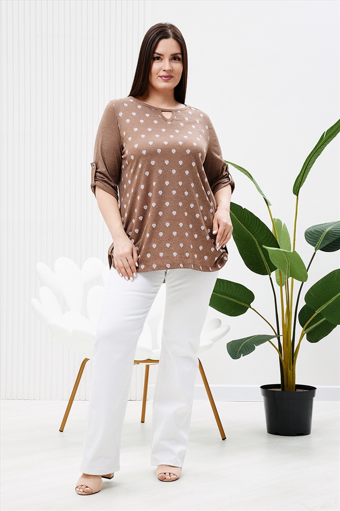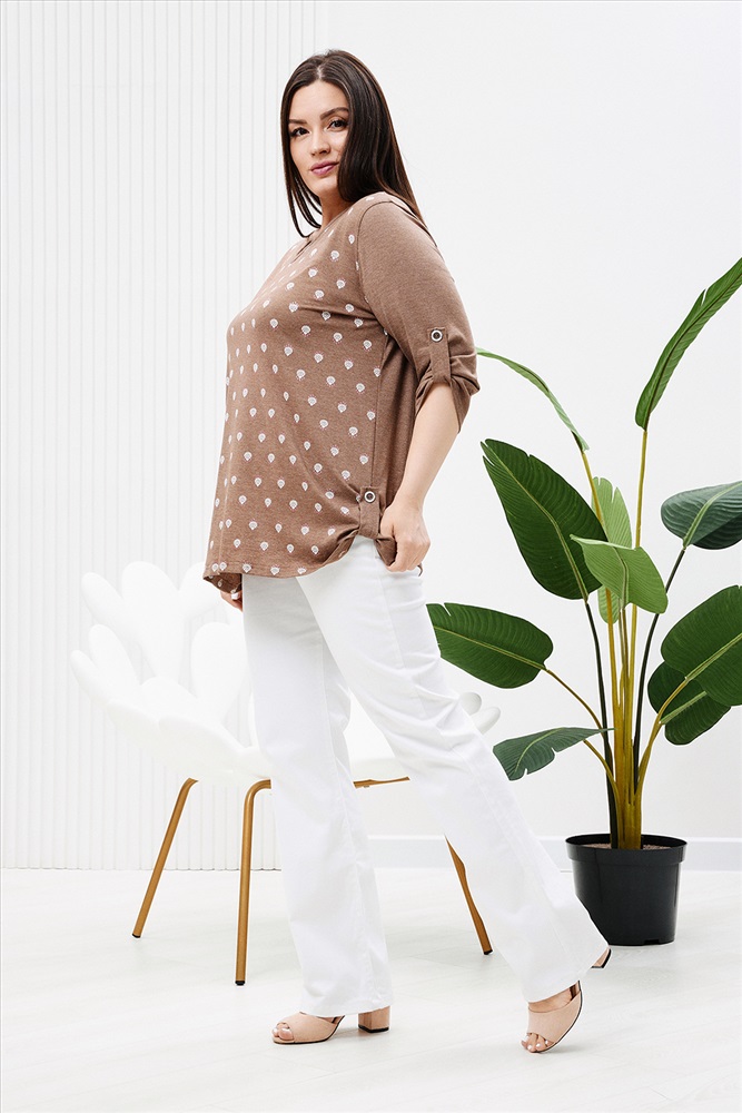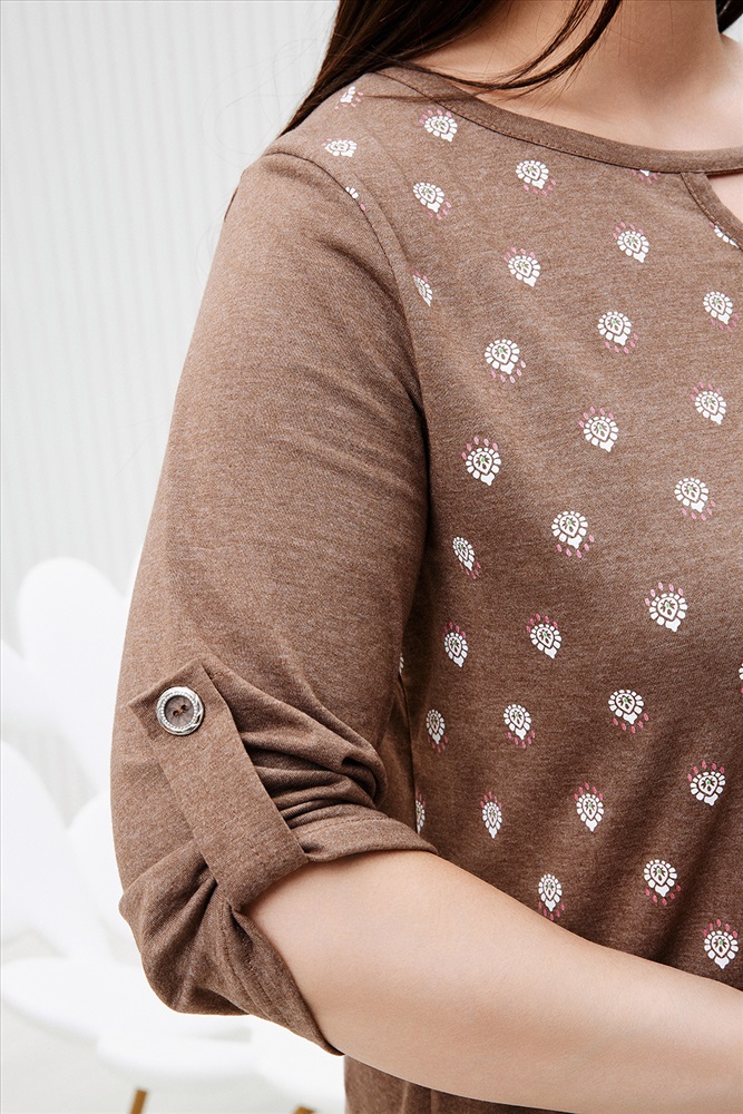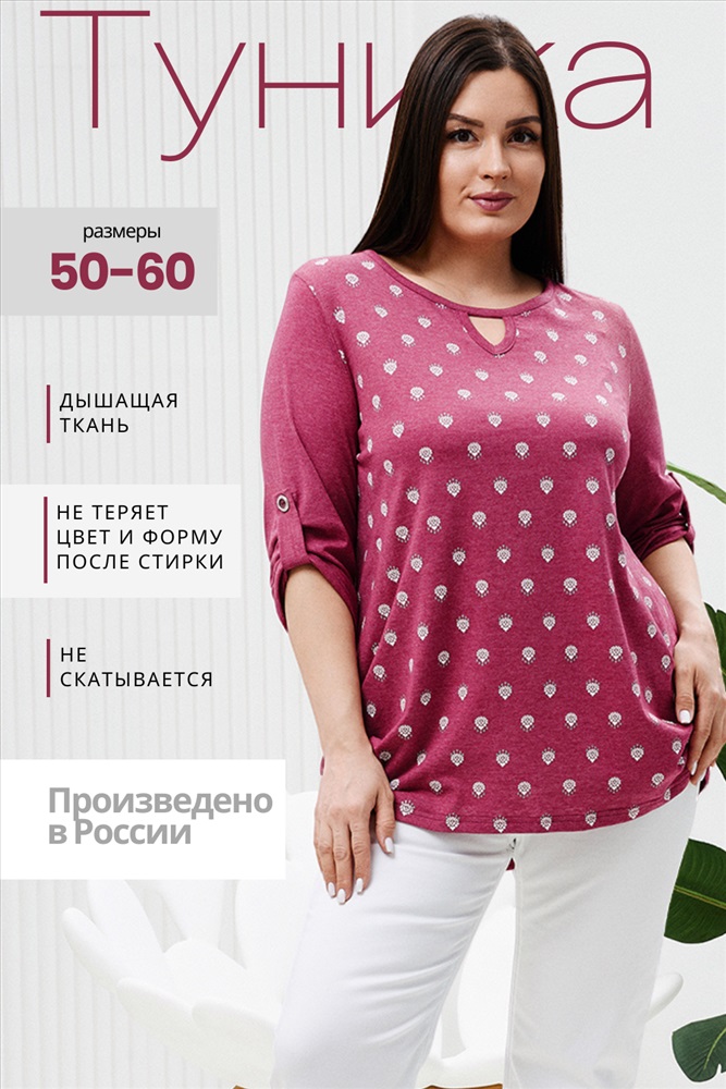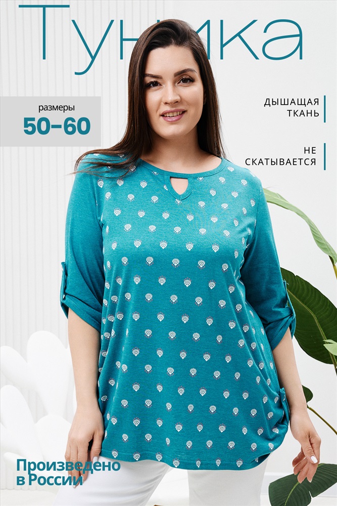 Застежка: без застежки Туника женская прямого свободного кроя, состав 50% хлопок, 50% ПЭ. Горловина туники круглая с фигурной капелькой обработана окантовкой, рукав туники 3/4 с хлястиком на декоративной пуговице, низ обработан на плоскошовной машине, по бокам низа хлястики с декоративными пуговицами, на полочке печать. Туника легкая в уходе, подойдет для повседневной носки.