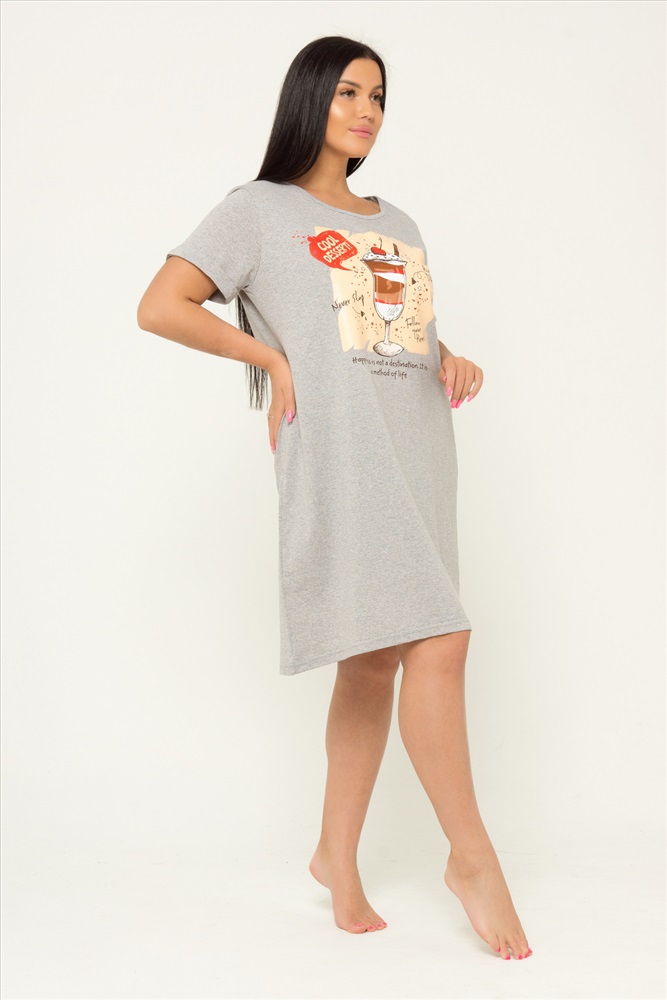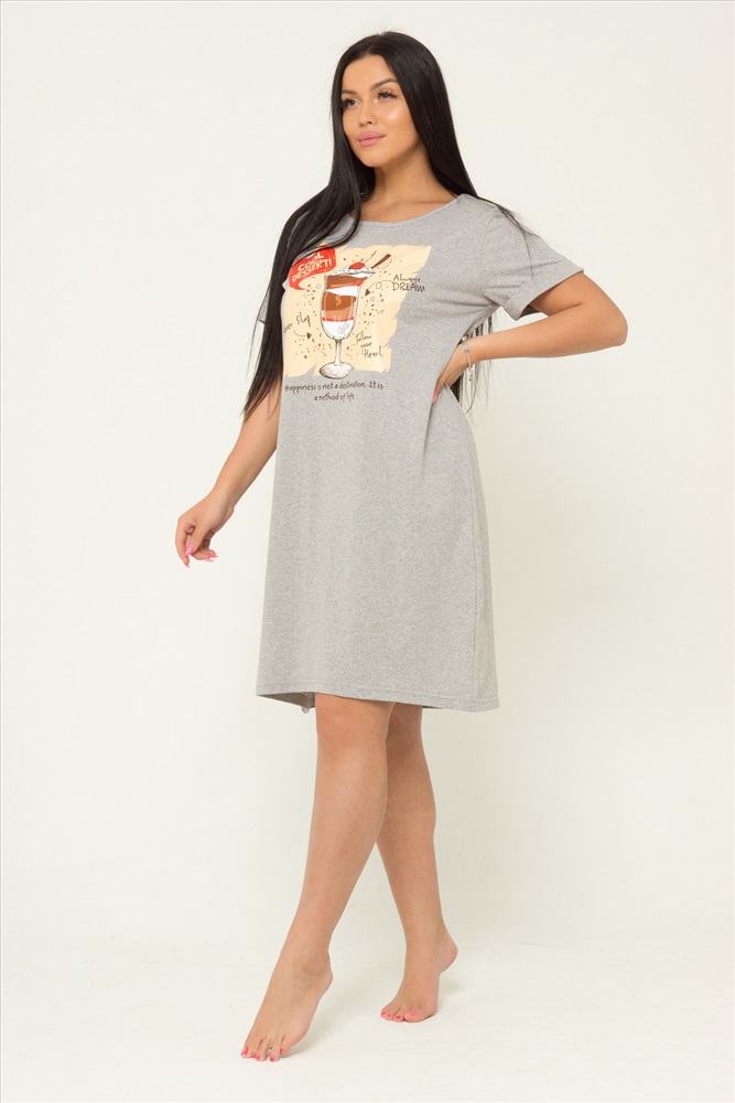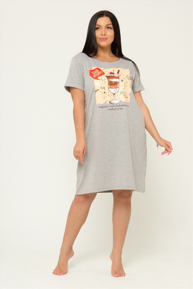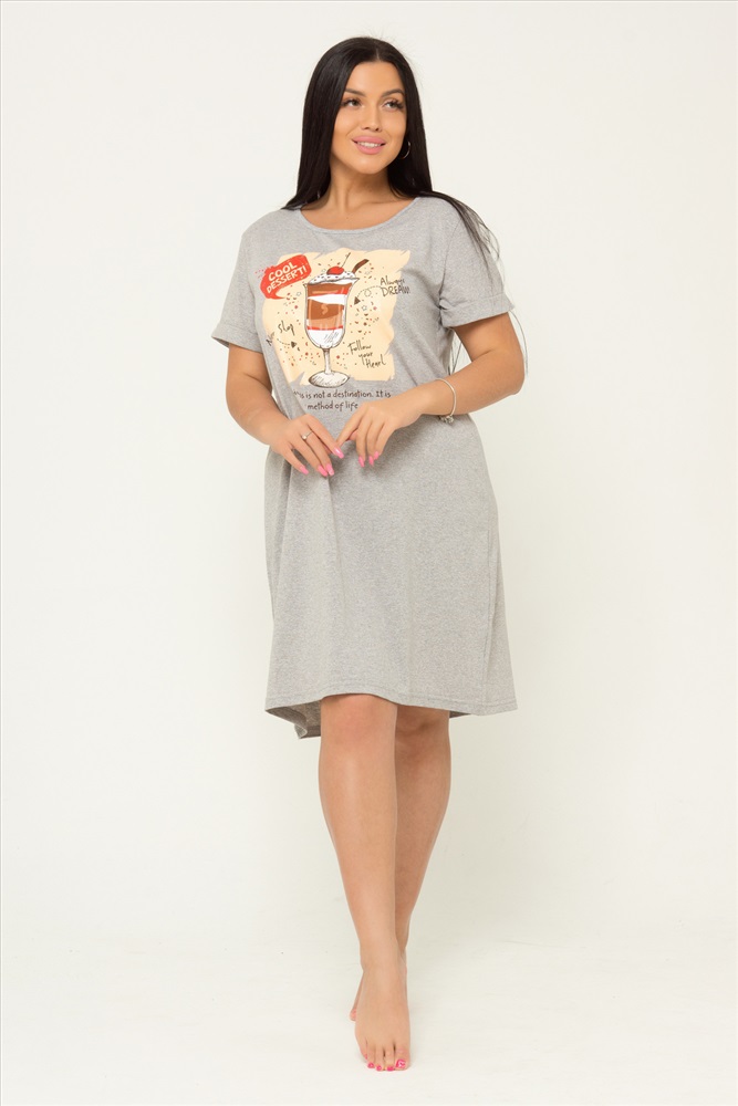 Застежка: без застежки Нежные весенние цвета и оригинальный принт - все для милых дам и весеннего настроения!! Отличный подарок на весенние праздники и не только. Туника женская прямого силуэта, на полочке принт. Короткий вшивной рукав с отложным манжетом. Отлично подойдет для домашнего отдыха и сна