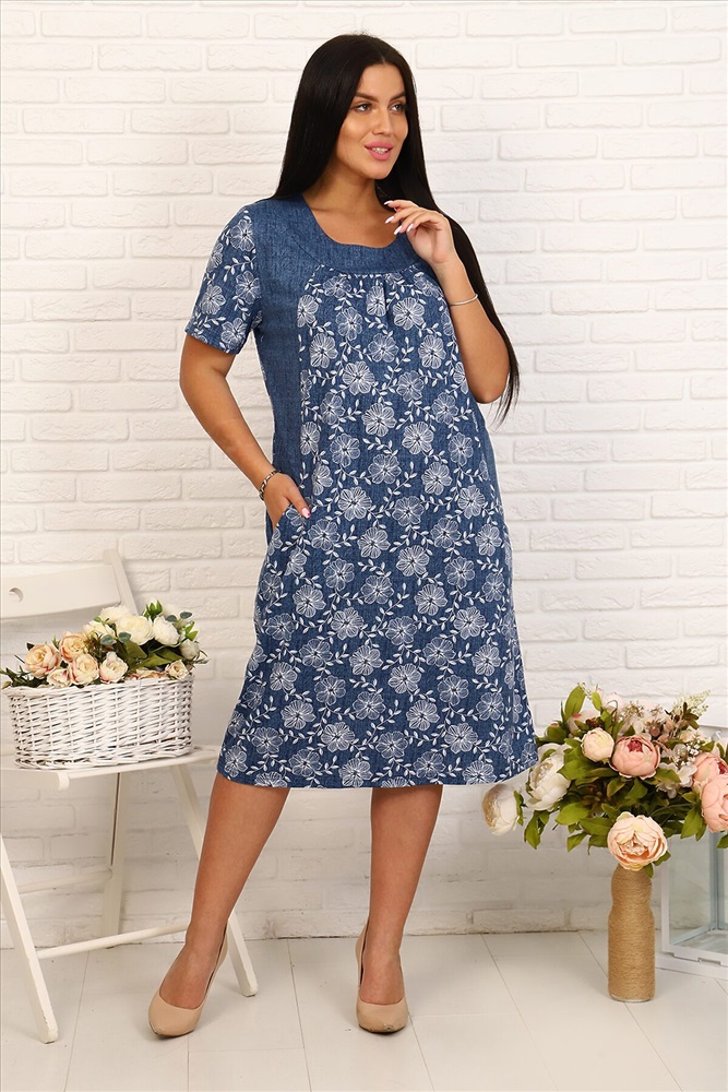 ID товара: 659047 Состав: Хлопок 80%, Полиэстер 20% Сезон: Весна/Лето Длина: Ниже колена Фасон: Расклешенный Рукав: Короткий Вырез горловины: Круглый Основная ткань: Хлопок | Кулирка Стиль: Повседневный Страна бренда: Россия Страна производства: Россия Туника из кулирки - отлично подходит как для дома, так и для дачи. Выполнена в расцветке под джинс, спереди кокетка со складками, карманы в рельефе, короткий рукав. Очень удобная и красивая модель, о покупке которой Вы не пожалеете Комментарии к товару