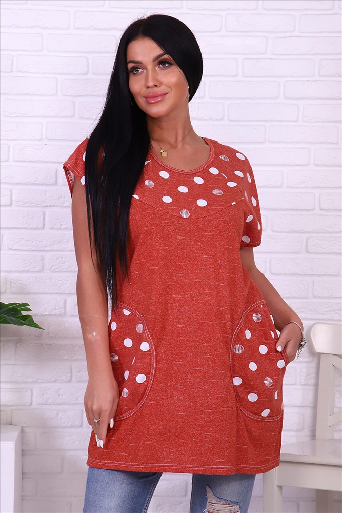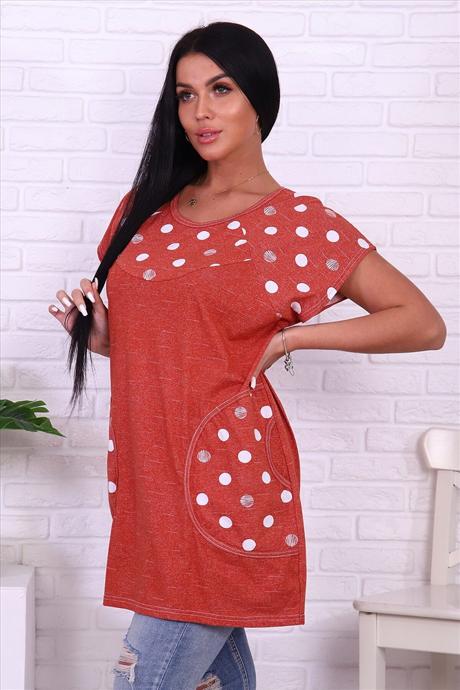 ID товара: 877764 Состав: 100% Хлопок Сезон: Демисезон Длина: Средняя Фасон: Прямой Рукав: короткие Вырез горловины: Округлый Основная ткань: Кулирка Стиль: Повседневный Страна бренда: Россия Страна производства: Россия Туника женская, силуэт трапеция, спущенная линия плеча, имеются накладные карманы, обработанные бейкой. Прекрасный вариант для повседневной носки. Комментарии к товару