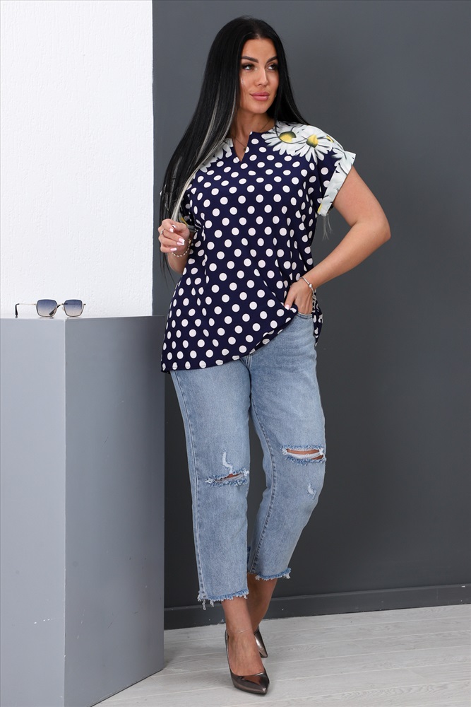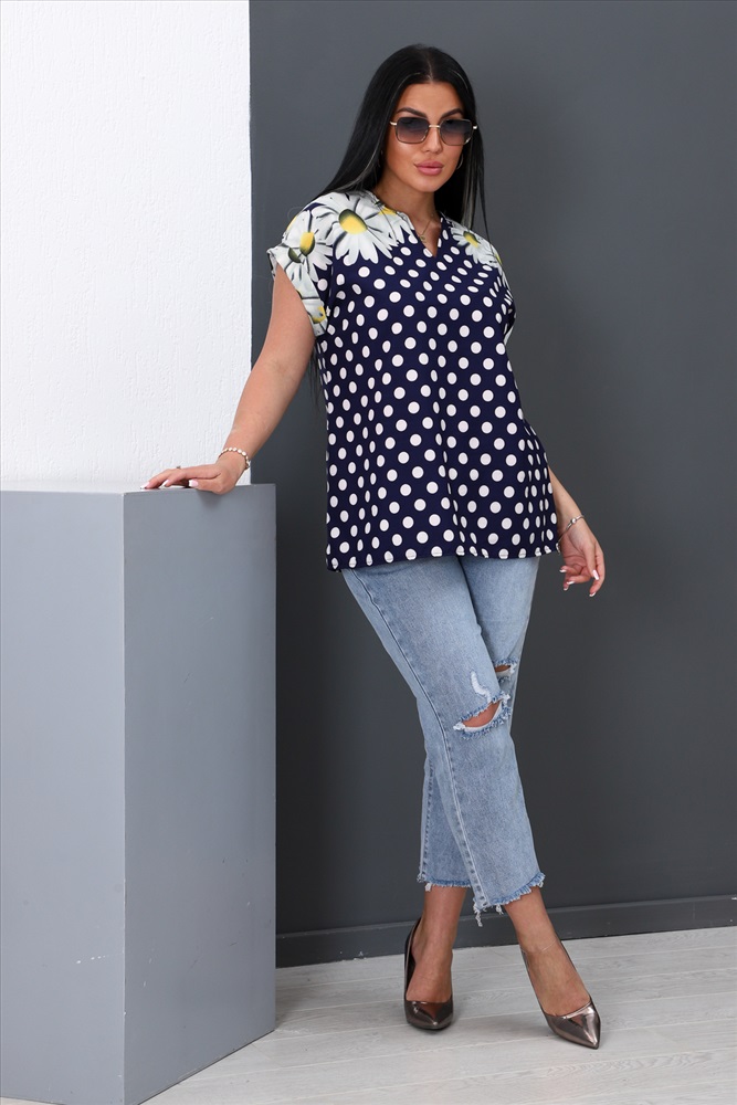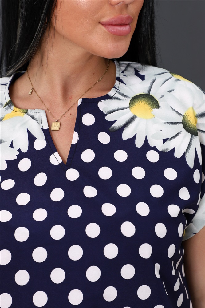 Застежка: без застежки Туника женская прямого силуэта со спущенным коротким рукавом на манжете. Округлый V-образный воротник. Легкая и удобная.