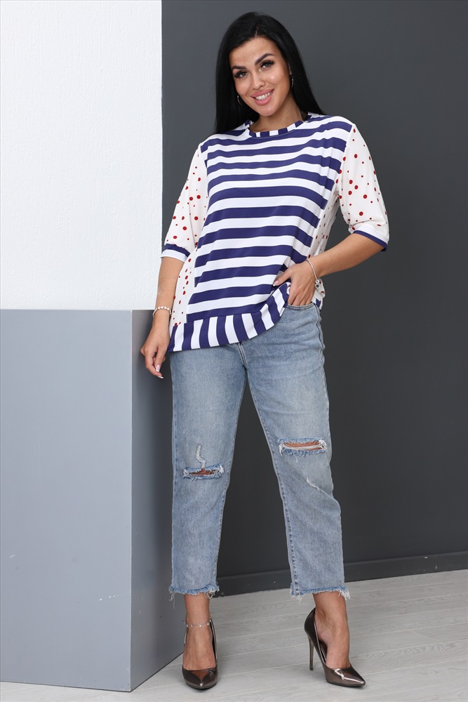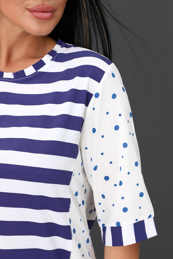 Состав: 100% полиэстер Модель: Туника 52290 Тип товара: туника Материал: софт | софт Бренд: Натали Суслова Длина: короткий Карман: без карманов Отделка: с манжетами Рисунок: горошек | полоска Рукав: рукав 3/4 Сезонность: лето | осень | весна | зима Силуэт: прямой Скидка: любая | от 10% и больше Стиль: повседневный Воротник: без воротника Застежка: без застежки Туника женская летняя прямого силуэта, округлый воротник, рукав 3/4 (длина от шва)на манжете, низ изделия также на манжете. Легкая и удобная. Таблица размеров и веса