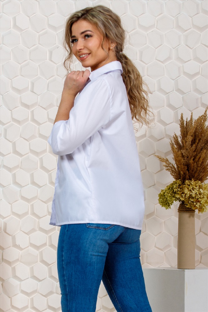 Состав: полиэстер 65%, хлопок 35% Модель: Туника 57027 Тип товара: туника Материал: смесовая ткань | смесовая ткань Бренд: Натали Суслова Длина: средняя длина Карман: без карманов Рейтинг: Рейтинг 4 и выше Рисунок: однотонные Рукав: рукав 3/4 Сезонность: лето | осень | весна | зима Силуэт: прямой Стиль: офисный | повседневный Воротник: рубашечный воротник Застежка: пуговицы Рубашка белая офисная на пуговицах, низ прямой, с воротником, рукав 3/4. Таблица размеров и веса