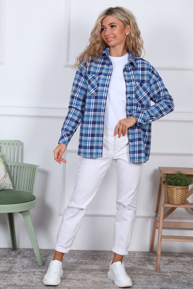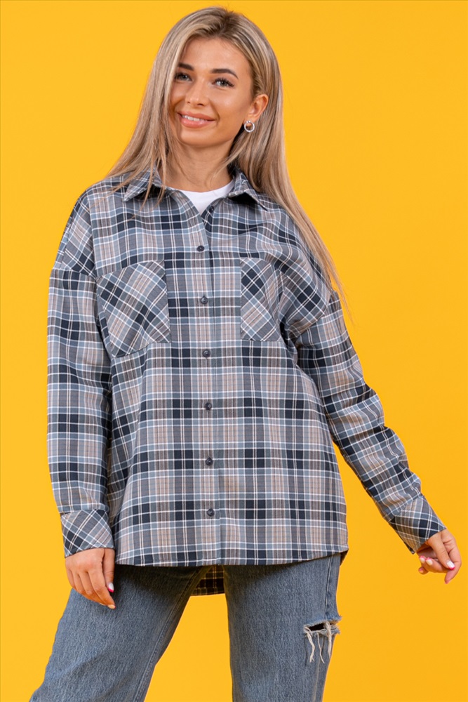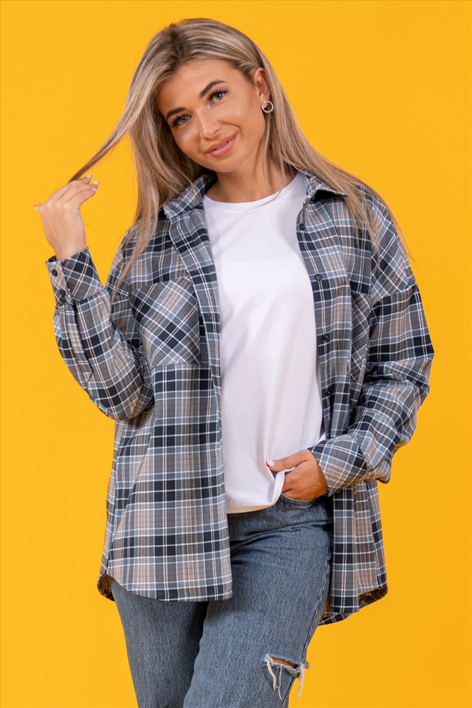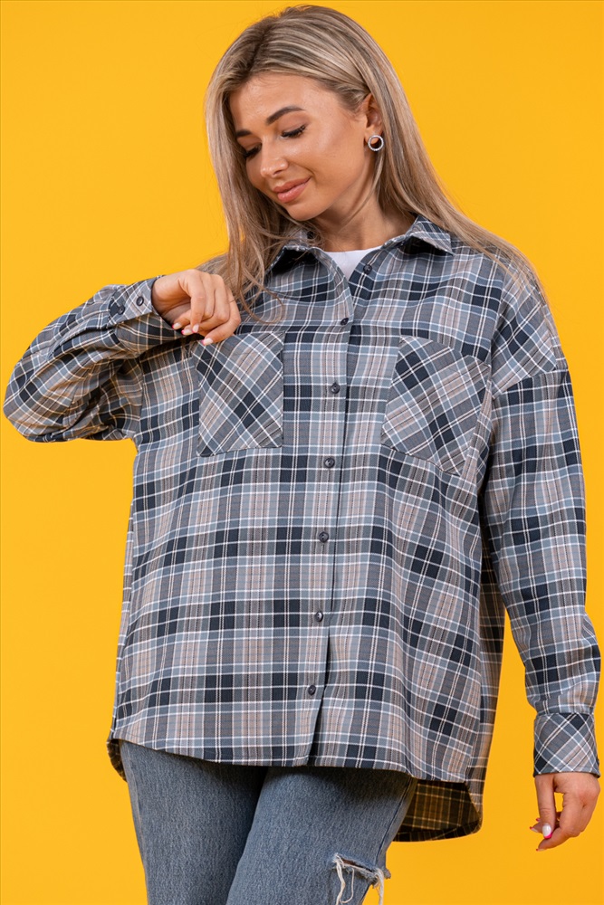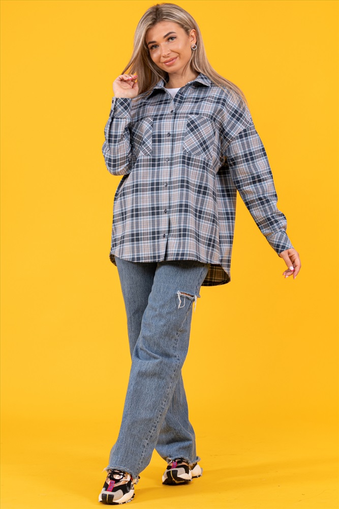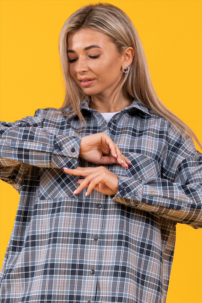Застежка: пуговицы Рубашка оверсайз, тёплая, в клетку, из ткани премиального качества - с начесом с изнанки,100% хлопок (фуле). Рубашка с воротником, рукав длинный, 2 кармана на груди, спинка длиннее полочки.