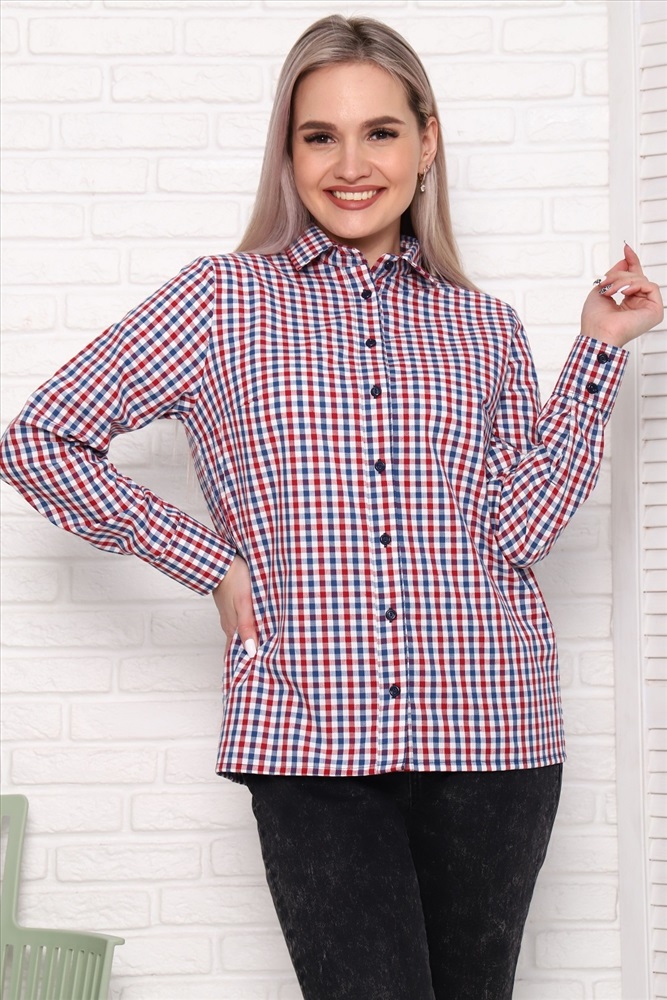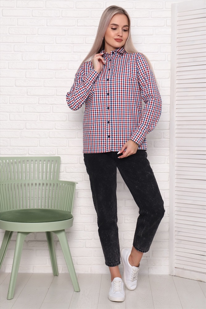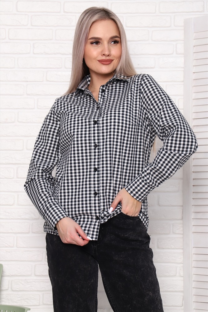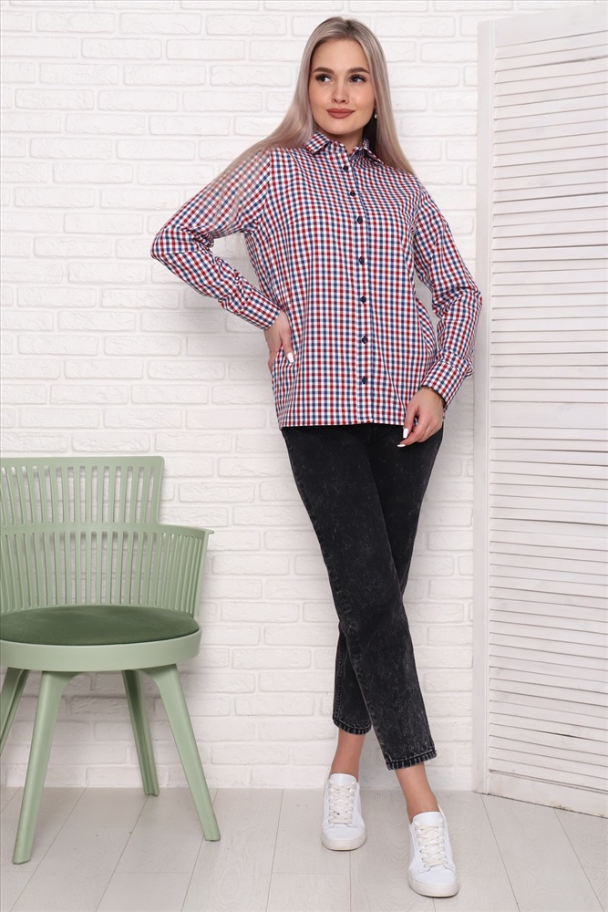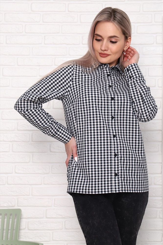 Застежка: пуговицы Туника-рубашка прямого силуэта, с длинным рукавом, без карманов, нагрудные вытачки. Ткань - шотландка, 100% хлопок. Классический рисунок в клетку и универсальные расцветки делают рубашку отличной повседневной вещью и для работы/учёбы, и для отдыха.