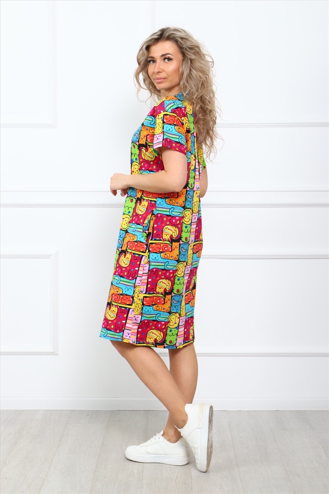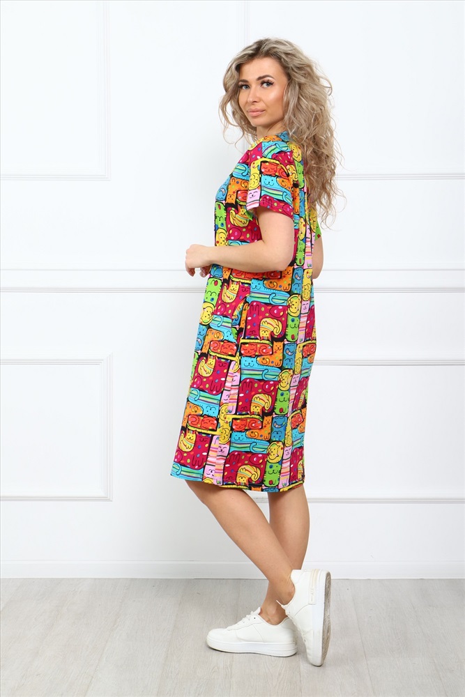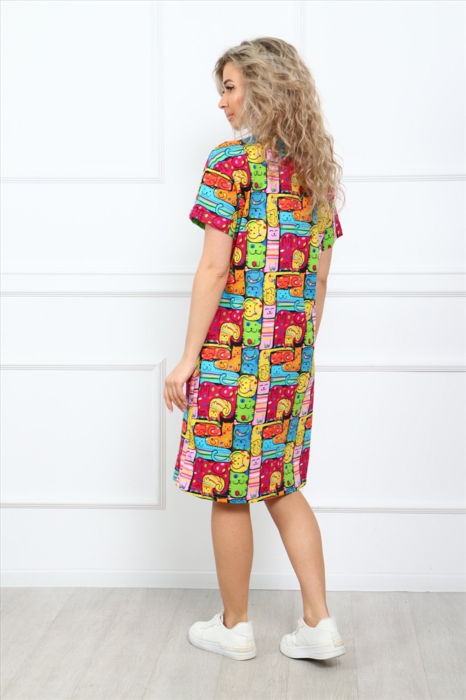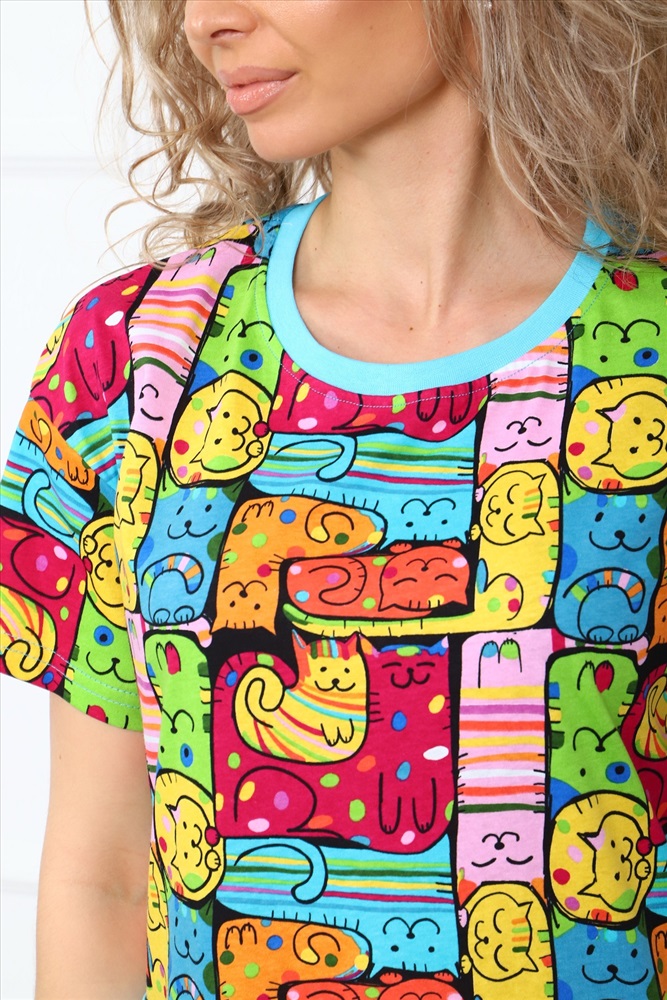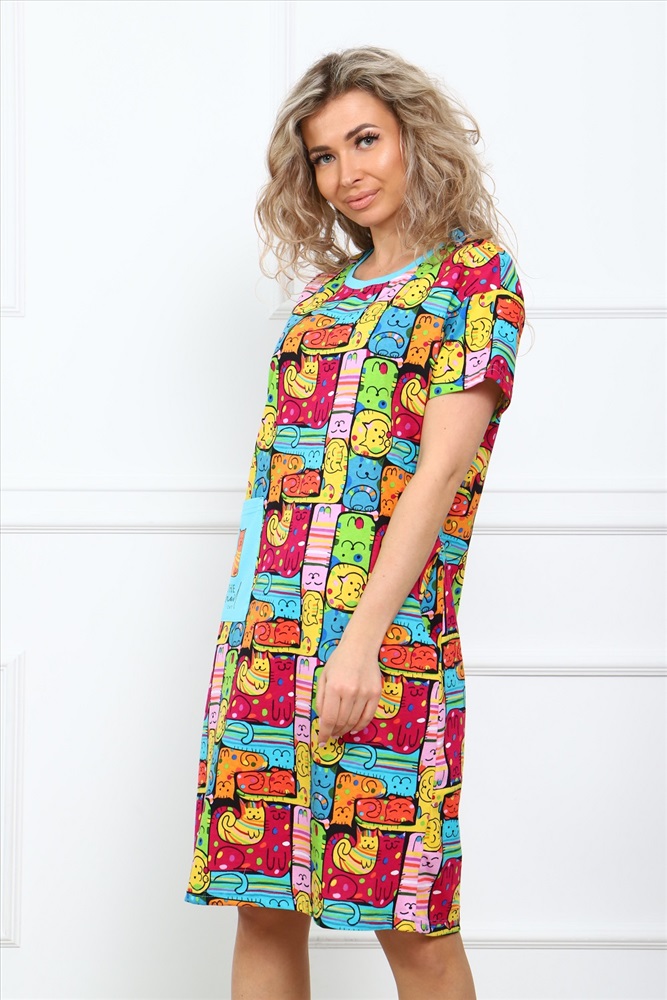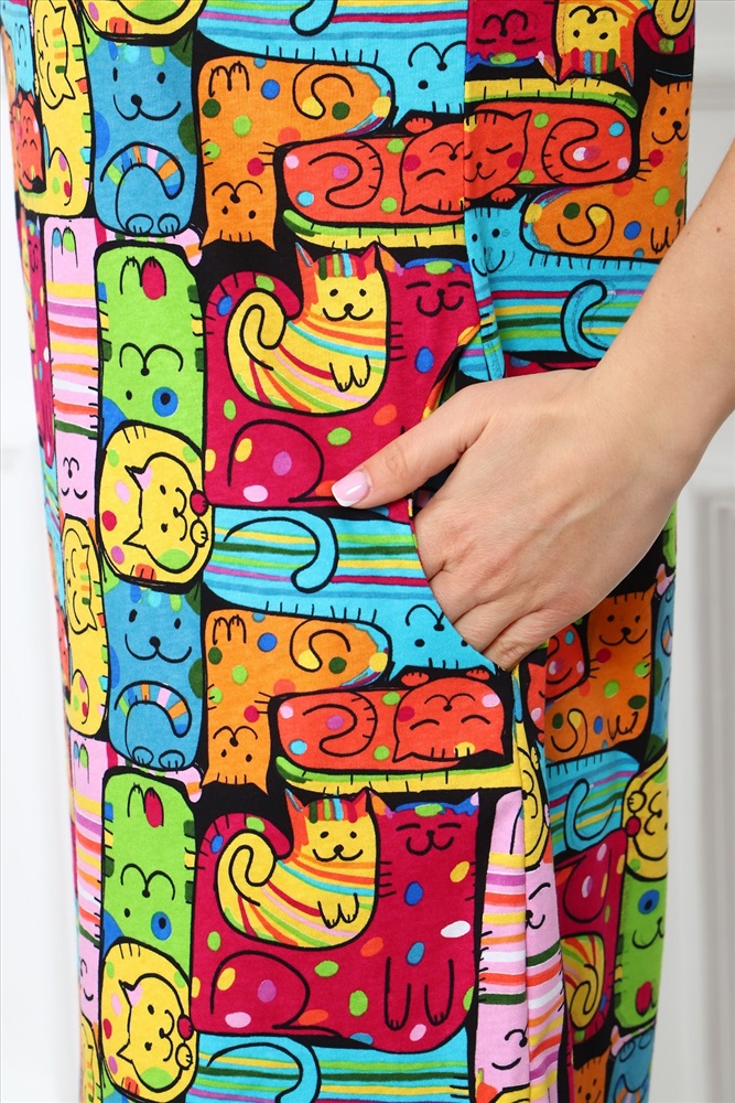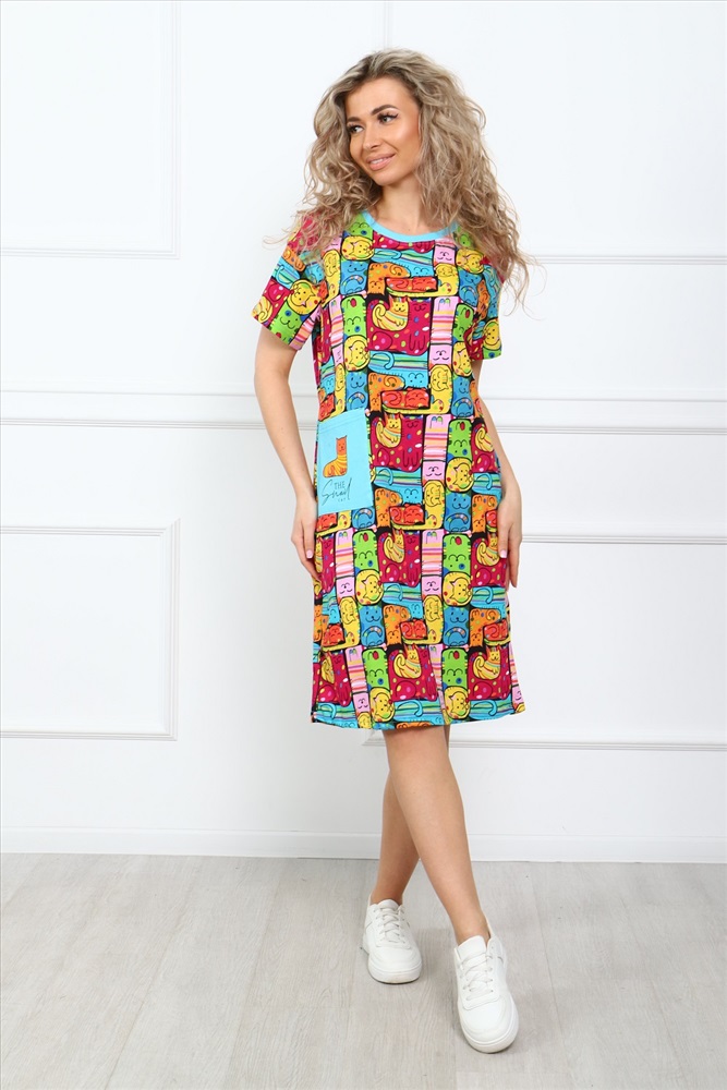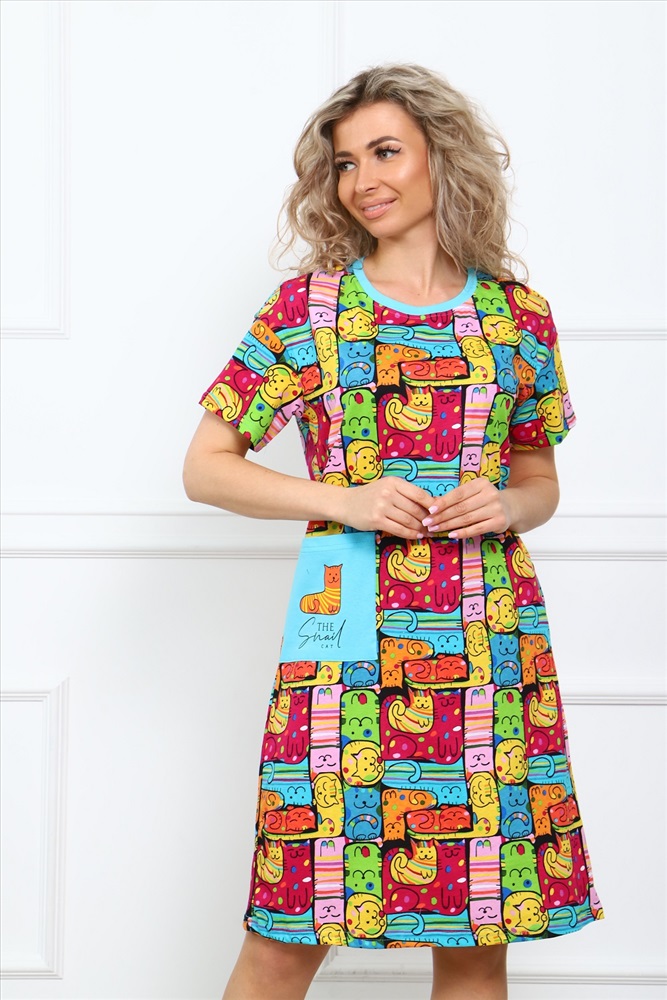 Состав: хлопок 100% Модель: Туника 57149 Тип товара: туника Материал: кулирка | кулирка Бренд: Натали Суслова Карман: накладные Назначение: для дачи | для дома НДС: 5% Отделка: с карманами Рисунок: геометрия | зверюшки Рукав: короткий рукав Сезонность: лето | осень | весна Силуэт: свободный Стиль: домашний Воротник: без воротника Застежка: без застежки Туника женская прямого кроя с короткими рукавами, два кармана: один в левом боковом шве, и один накладной на полочке с очаровательным, уютным принтом котейки. Комфорт 100%-ого хлопка. Таблица размеров и веса