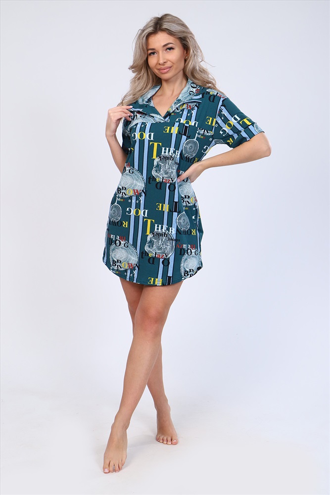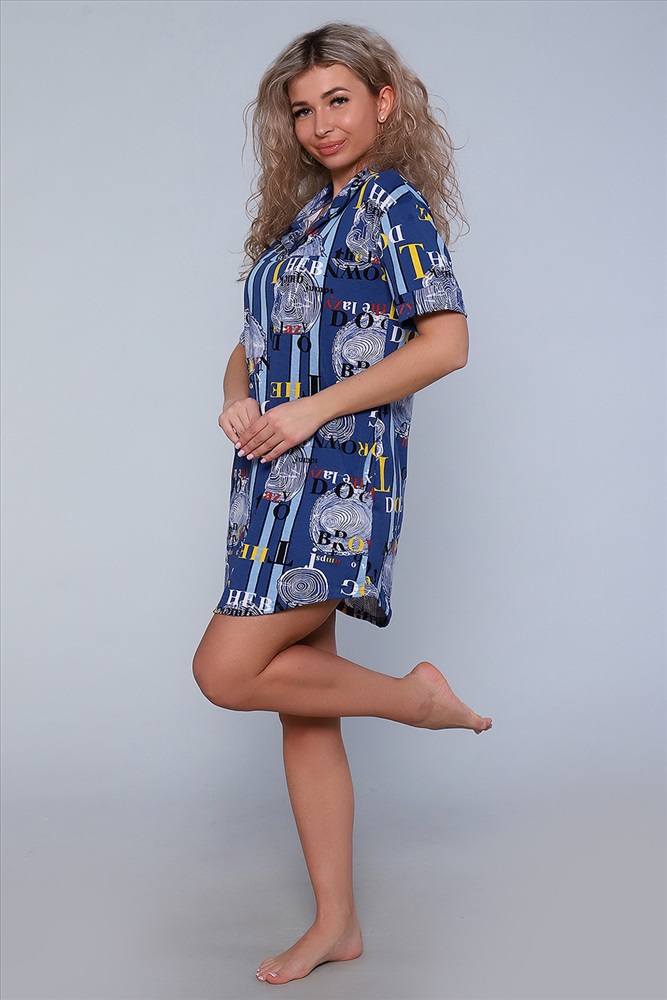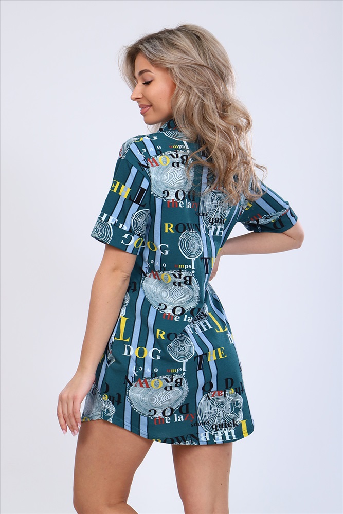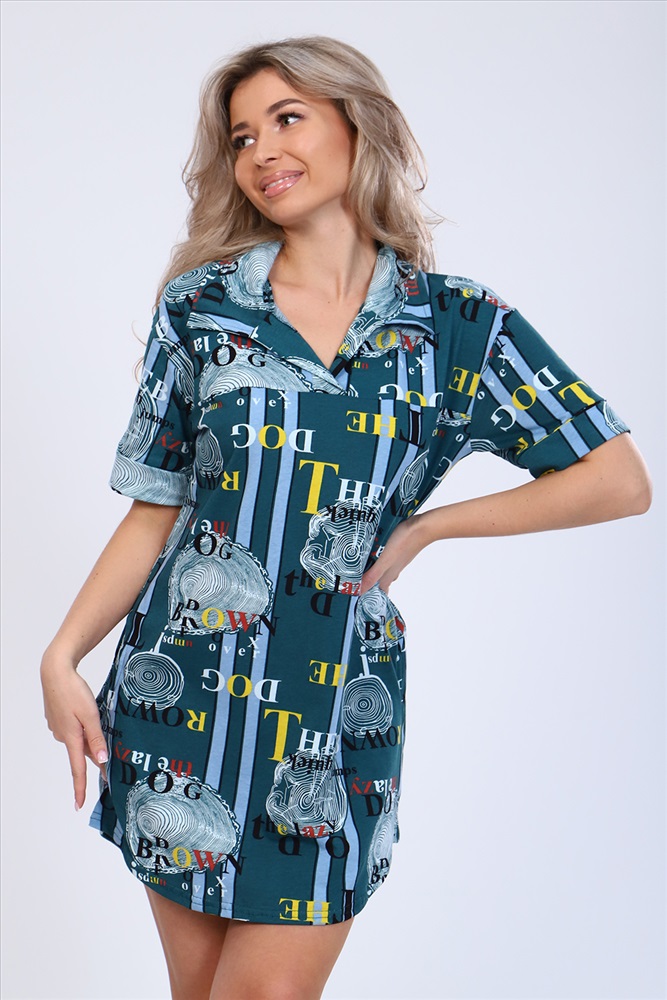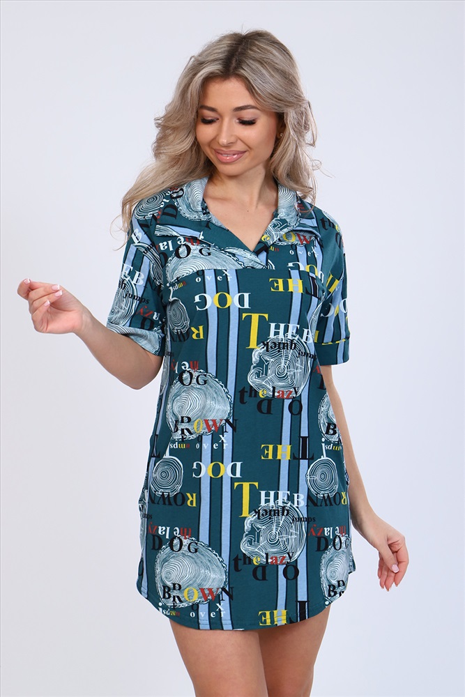 Застежка: без застежки Туника полуприлегающего силуэта с короткими рукавами на манжетах, рубашечным воротником и боковыми карманами. Неотъемлемый элемент домашнего гардероба.