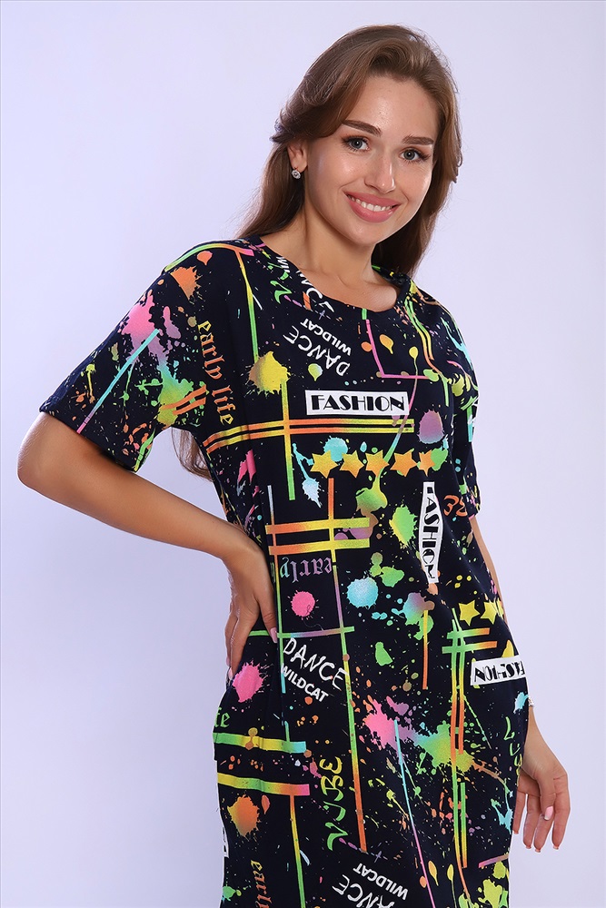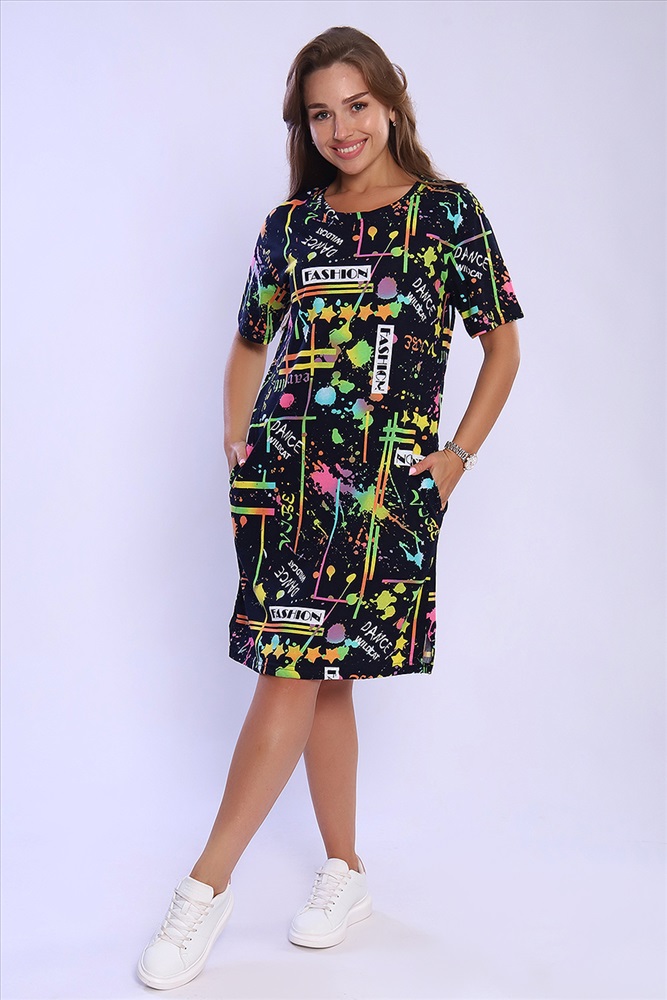 Состав: 100% хлопок Модель: Туника 59155 Тип товара: туника Материал: кулирка | кулирка Бренд: Натали Суслова Длина: средняя длина Карман: боковые Назначение: для дома НДС: 5% Отделка: с карманами Рисунок: абстракция | надпись | разное Рукав: короткий рукав Сезонность: лето | осень | весна | зима Силуэт: свободный Стиль: домашний | повседневный Воротник: без воротника Застежка: без застежки Туника полуприлегающего силуэта с короткими рукавами на спущенном плече. Разрезы и карманы в боковых швах. Комфортна для повседневной носки. Таблица размеров и веса