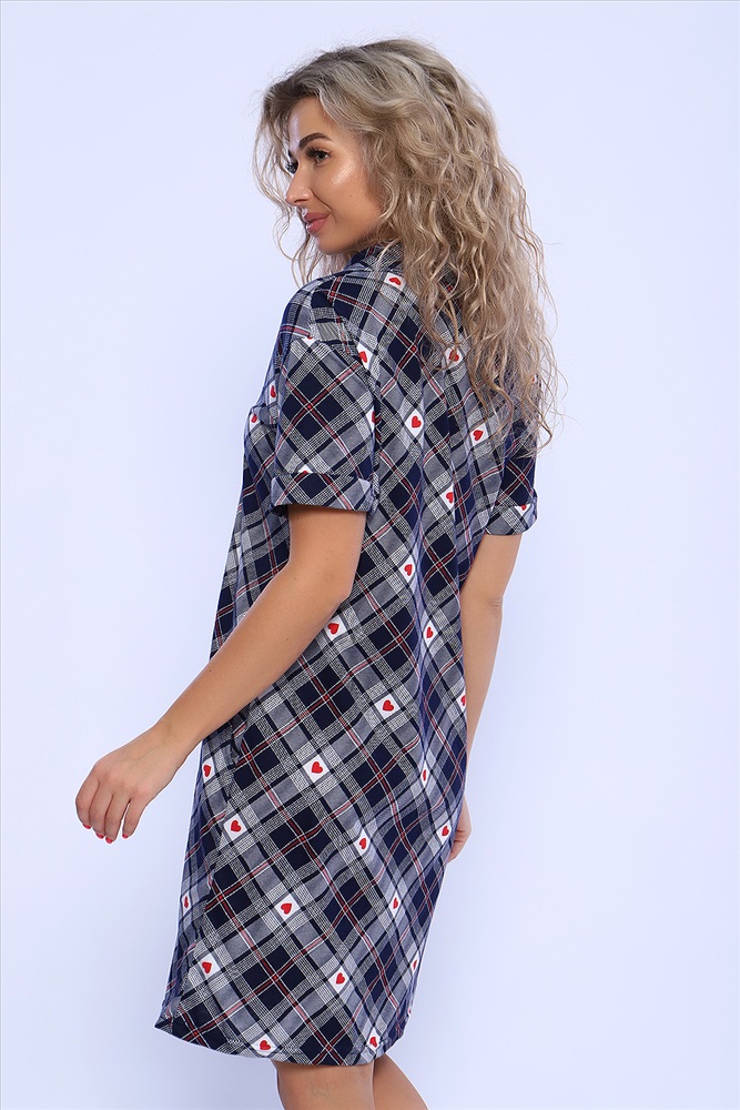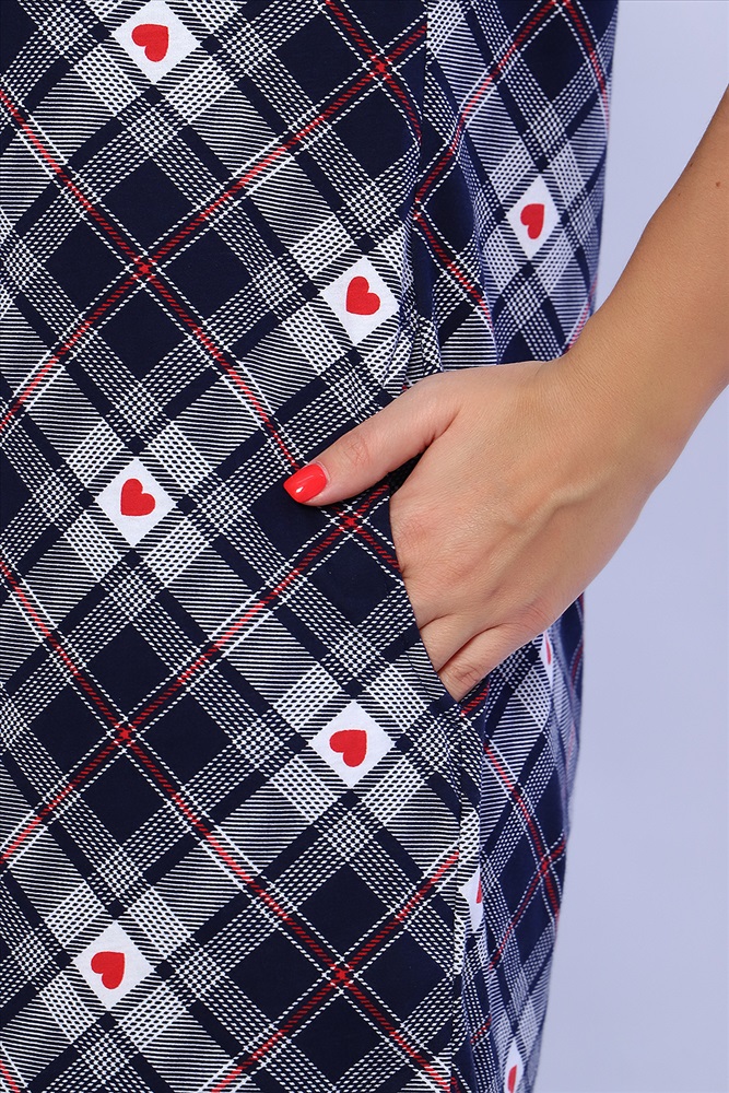 Состав: 100% хлопок Модель: Туника 59194 Тип товара: туника Материал: кулирка | кулирка Бренд: Натали Суслова Длина: средняя длина Карман: боковые Назначение: для дома НДС: 5% Отделка: с карманами | с манжетами Рисунок: клетка | сердечки Рукав: короткий рукав Сезонность: лето | осень | весна | зима Силуэт: полуприлегающий Стиль: домашний Воротник: рубашечный воротник Застежка: без застежки Туника полуприлегающего силуэта с короткими рукавами на манжетах и рубашечным воротником. Карманы в боковых швах. Неотъемлемый элемент домашнего гардероба. Таблица размеров и веса
