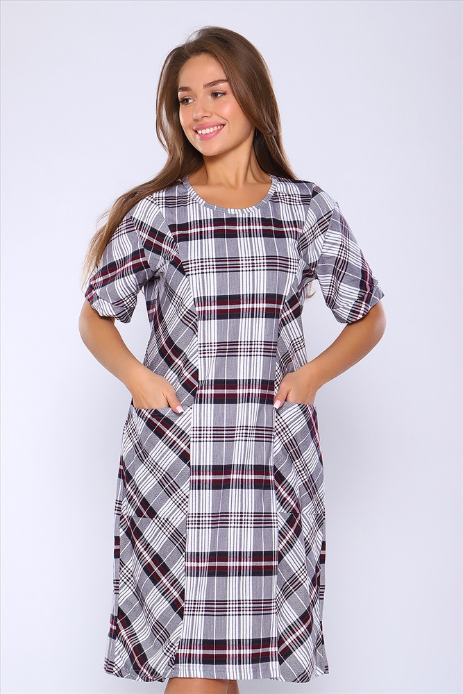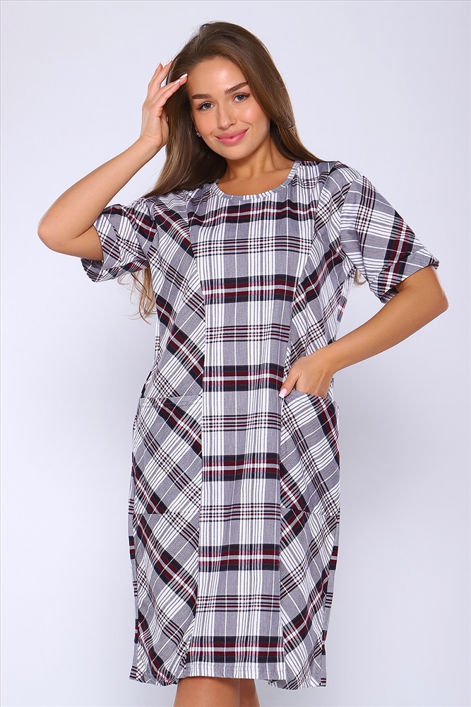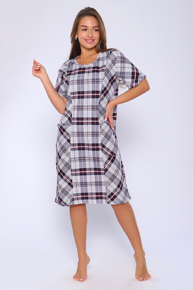 Состав: 100% хлопок Модель: Туника 59218 Тип товара: туника Материал: кулирка | кулирка Бренд: Натали Суслова Длина: длинный Карман: накладные Назначение: для дачи | для дома НДС: 5% Отделка: с карманами Рисунок: клетка Рукав: короткий рукав Сезонность: лето | осень | весна | зима Силуэт: прямой Стиль: домашний Воротник: без воротника Застежка: без застежки Туника полуприлегающего силуэта с короткими рукавами на манжетах. Полочка с рельефами и двумя накладными карманами. Неотъемлемый элемент домашнего гардероба. Таблица размеров и веса